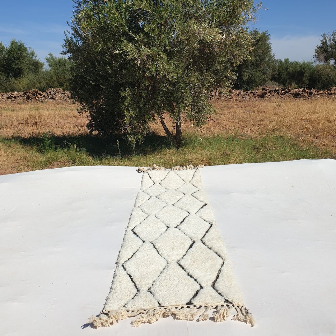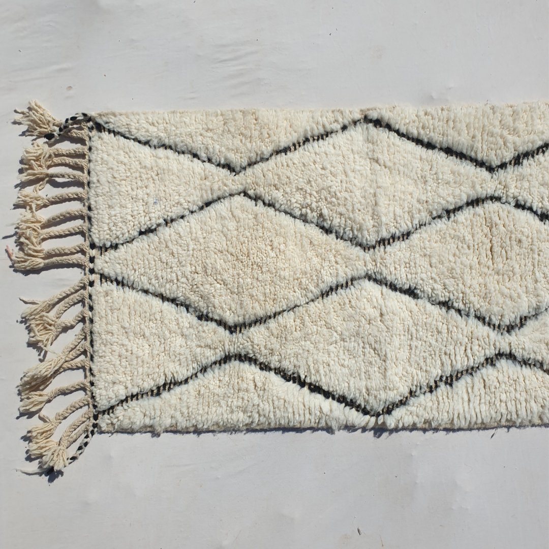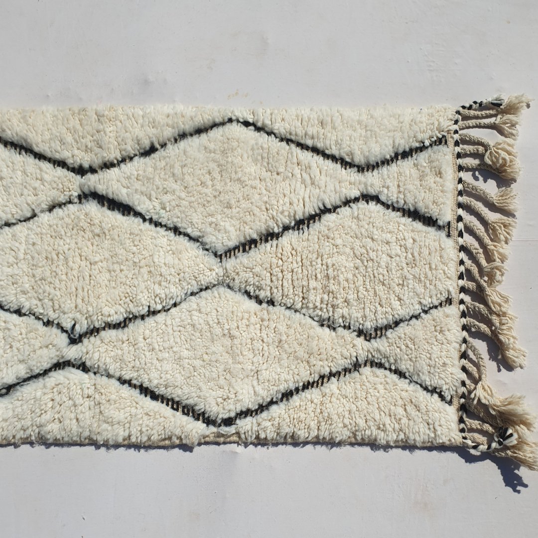 - How do I maintain my Beni Ouarain rug? Regular vacuuming and occasional professional cleaning are recommended. For more detailed care instructions, visit our cleaning instruction page here : Cleaning Moroccan Rugs.