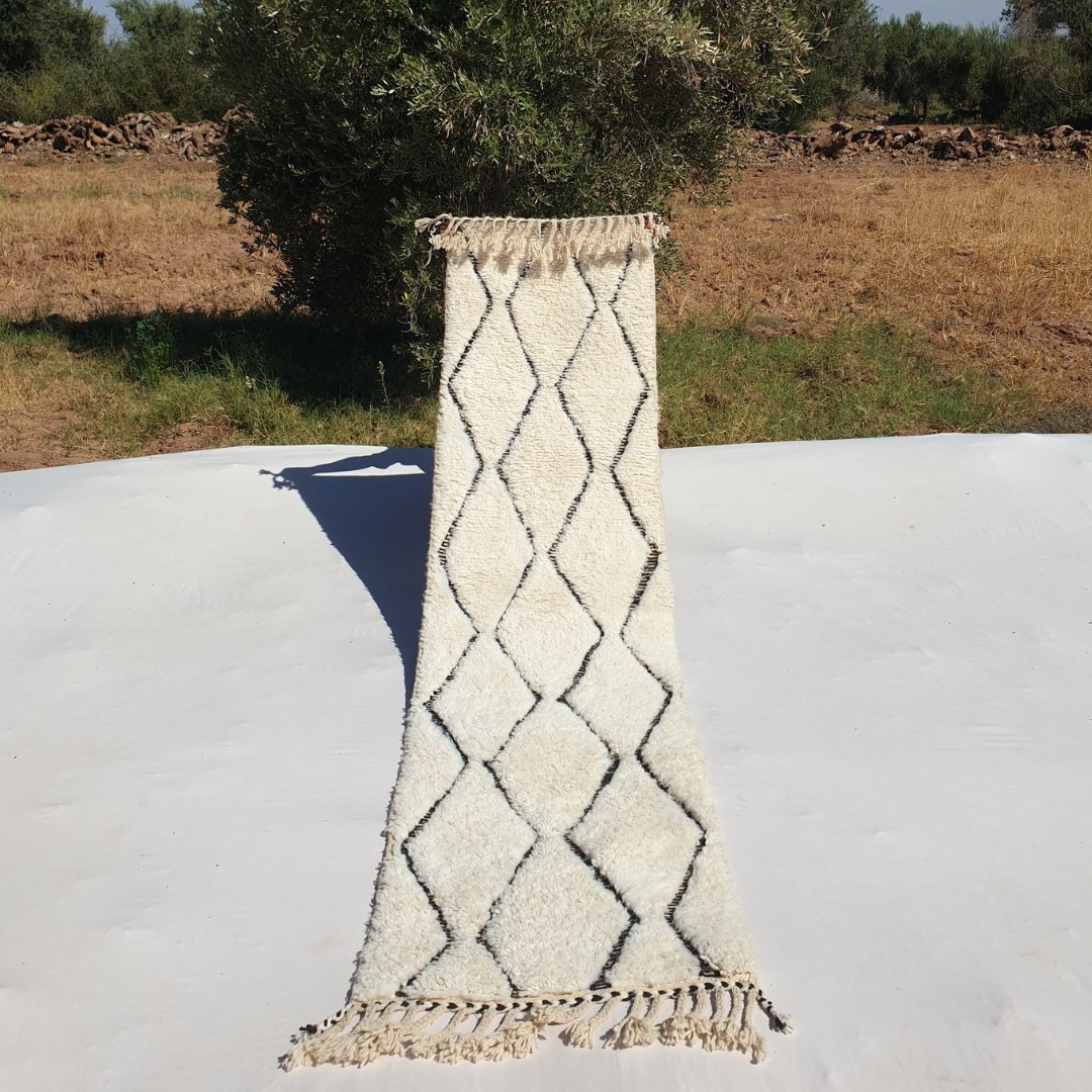 Atlas - White Moroccan Runner Rug Ultra Soft Beni Ourain | Authentic Berber Hallway runner | 2'43x9'68 ft | 74x295 cm
