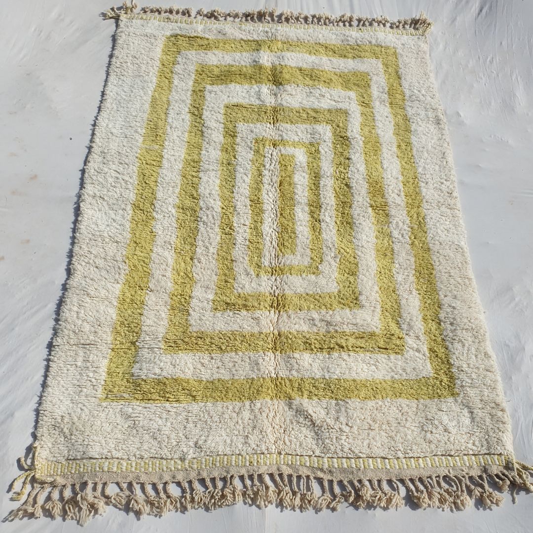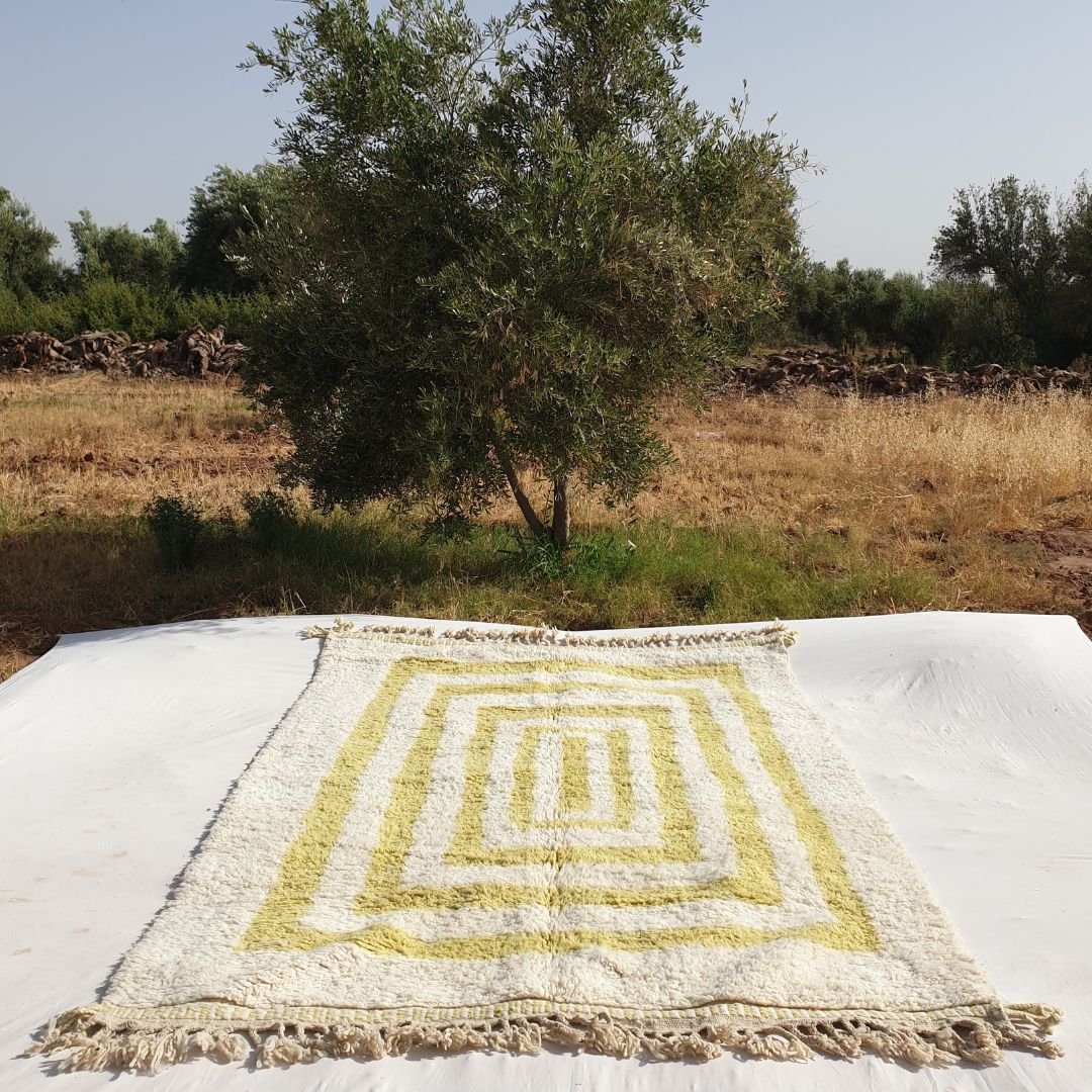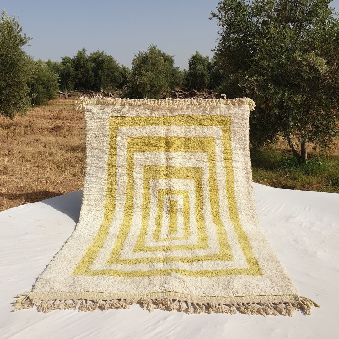 Lamane | Luxurious Golden Yellow 6x9 Moroccan Rug Plush Beni Mrirt Ultra Soft | Authentic Berber wool Beni Rug | 6'63x9'71 Ft | 202x296 cm