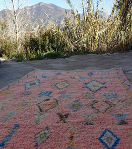 Boujaad rugs originally woven on traditional looms by Berber women in the Atlas Mountains of Morocco. These rugs are all individually handcrafted, each rug is special, unique and different, and you can never find the same pattern. They are made from natural sheep wool with natural dye, and typical knotting techniques practiced by Berber tribes - but with the knot being pulled tighter, those rugs require less wool which allows the weaver to create the intricate geometric patterns things that make Boujaad rugs famous and desired by the whole word and perfect for any indoor or outdoor style.