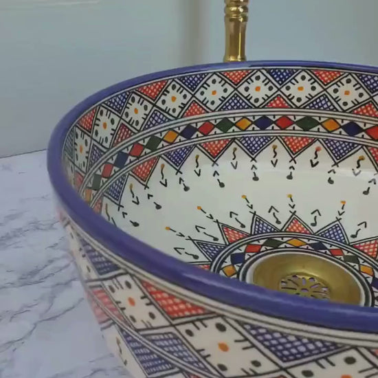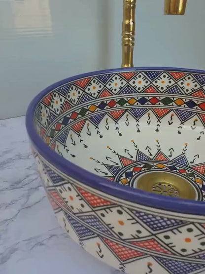 Akaroa - Double Bathroom Sink: Moroccan Handmade, Hand-Painted Joyful Colorful Ceramic Vessel