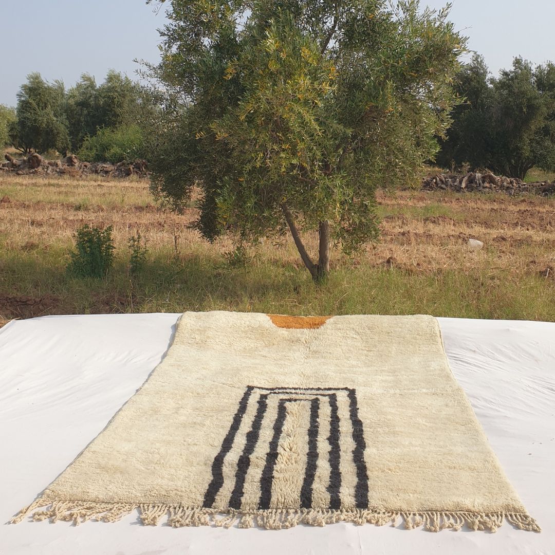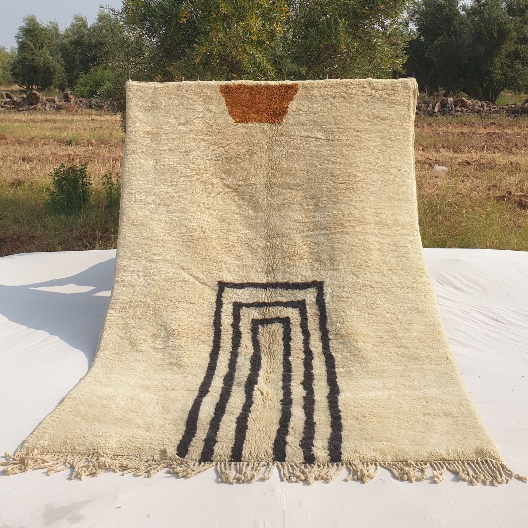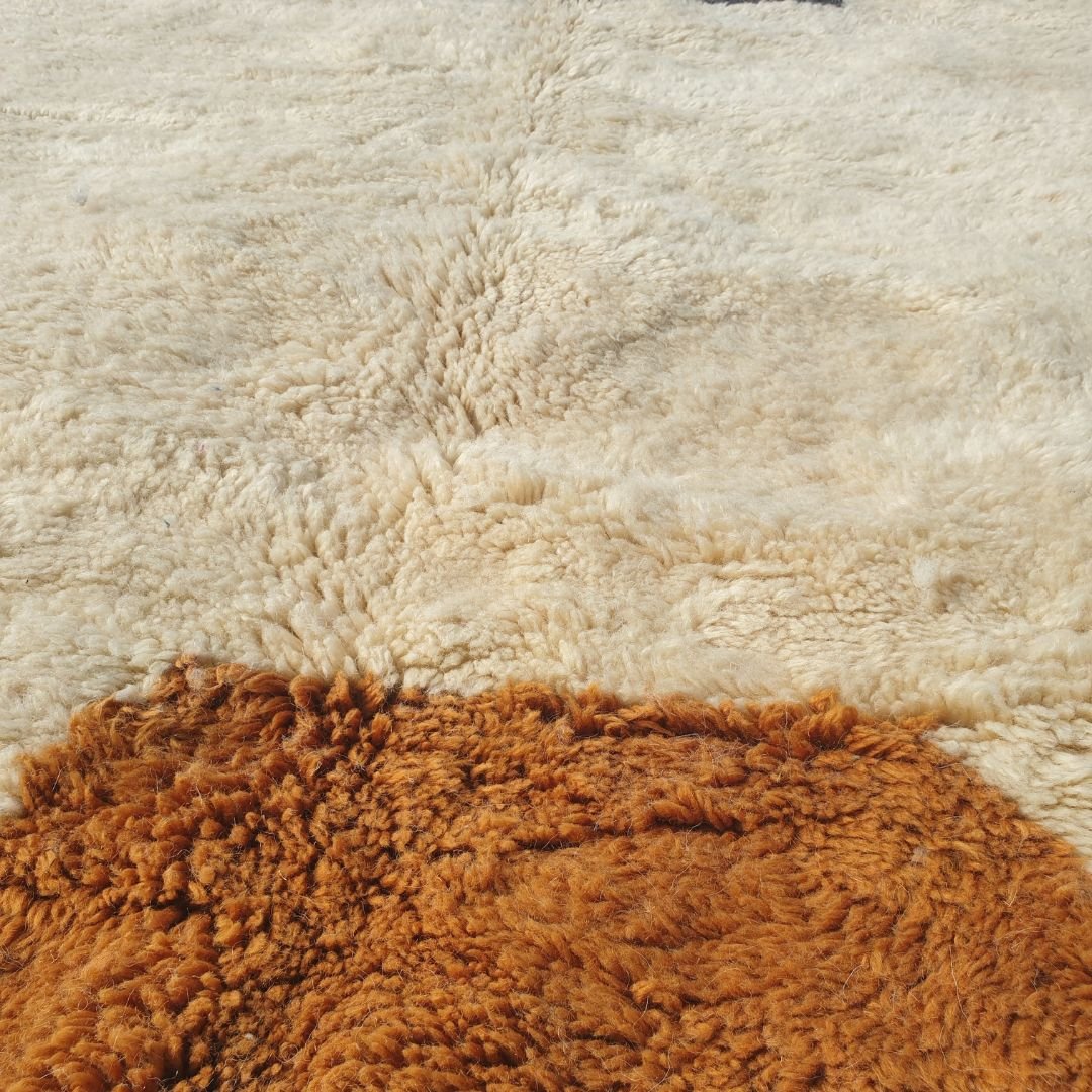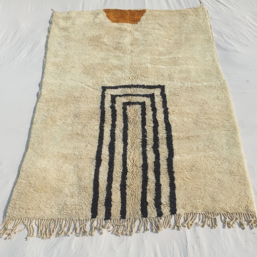 Originating from Beni M’rirt, a small town in Khenifra within the Middle Atlas Mountains, a Beni Mrirt rug is a pinnacle of Moroccan craftsmanship. Known as "noble rugs," these beni carpets are made from the finest sheep wool, densely knotted with double knots for exceptional durability and a silky texture. The wool is packed on a vertical loom using a metal comb, resulting in a long, warm, and soft pile that defines a fluffy rug. Each piece is a family tradition, handwoven by Berber women and cleaned outdoors—washed four times and sun-dried for up to four weeks in winter—enhancing its softness and brilliance, making it a highlight in our Moroccan rug collection.