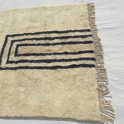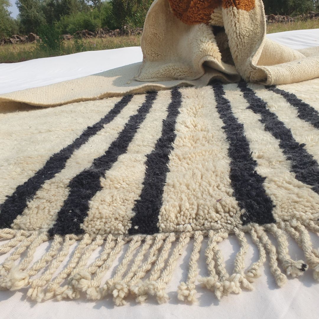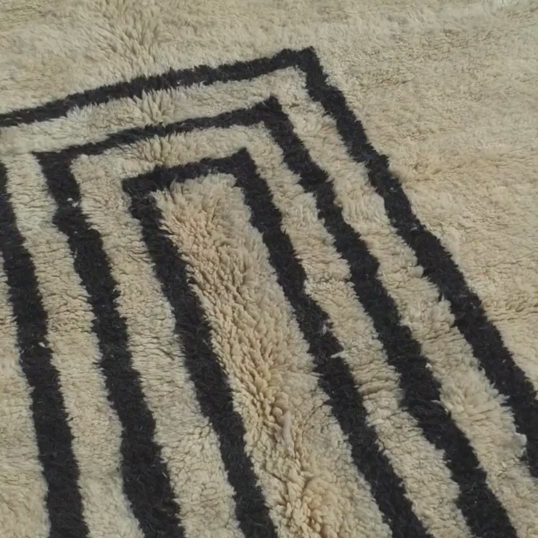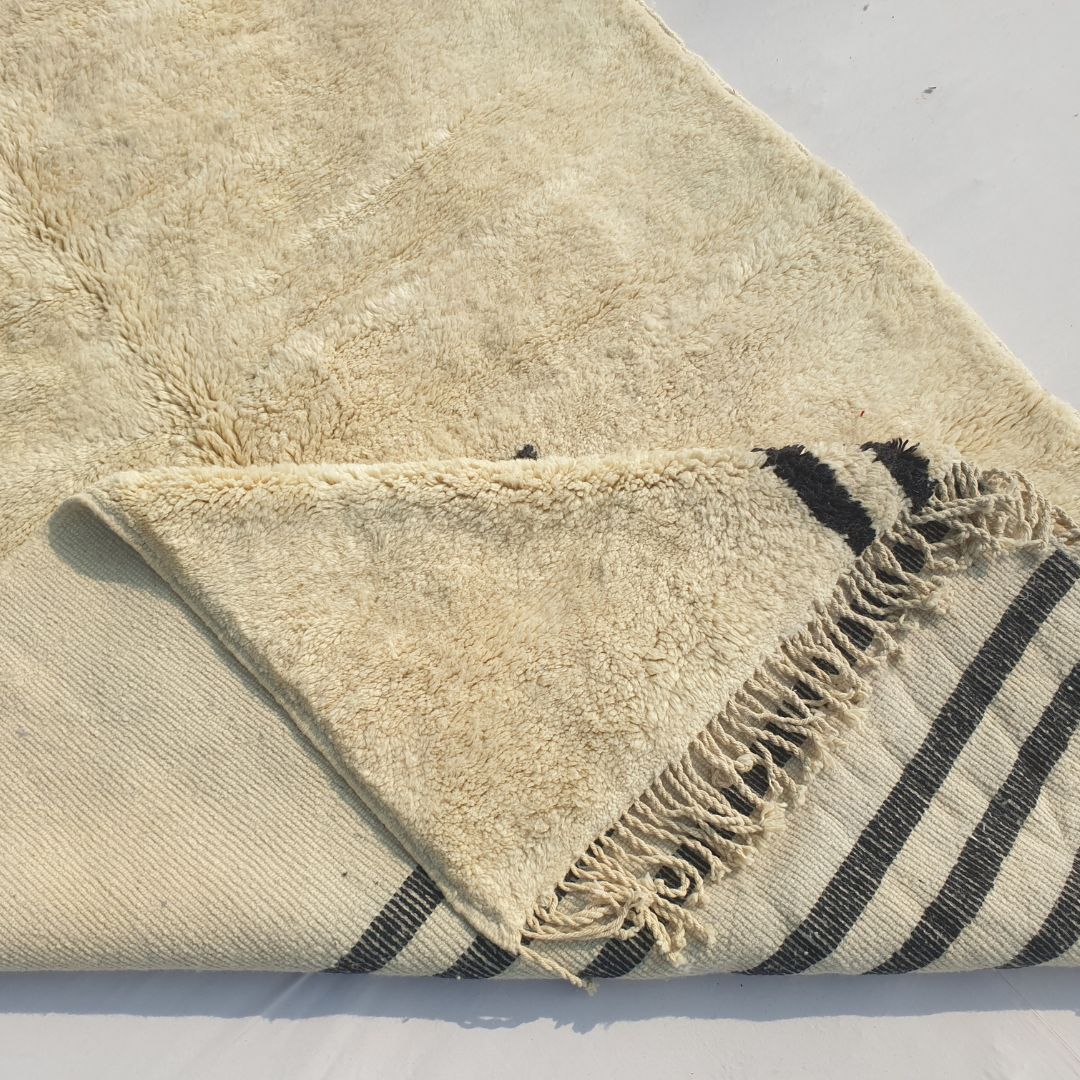 Originating from Beni M’rirt, a small town in Khenifra within the Middle Atlas Mountains, a Beni Mrirt rug is a pinnacle of Moroccan craftsmanship. Known as "noble rugs," these beni carpets are made from the finest sheep wool, densely knotted with double knots for exceptional durability and a silky texture. The wool is packed on a vertical loom using a metal comb, resulting in a long, warm, and soft pile that defines a fluffy rug. Each piece is a family tradition, handwoven by Berber women and cleaned outdoors—washed four times and sun-dried for up to four weeks in winter—enhancing its softness and brilliance, making it a highlight in our Moroccan rug collection.