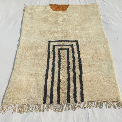 This plush area rug is a one-of-a-kind piece, with only one available. It features a tied, buckled, and twisted weave for a high-quality finish. We offer free worldwide shipping via DHL or FedEx, with payment options including PayPal, Visa, Mastercard, AMEX, Apple Pay, and Installments. For those seeking a custom 6x9 rug in living room, we provide custom-made options in any size, design, or color as part of our Moroccan carpets for sale. Note that colors may vary due to monitor differences, and dimensions may have slight variations, which is not a manufacturing defect. Add this neutral rug to your cart today and experience the luxury of a Beni Mrirt rug!