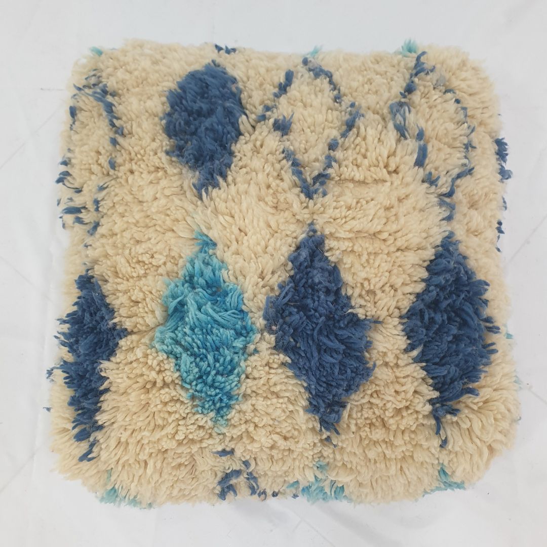 Coastal Handmade Moroccan Pouf – Blue Diamond Floor Cushion 24x24x8 inch | 60x60x20 cm