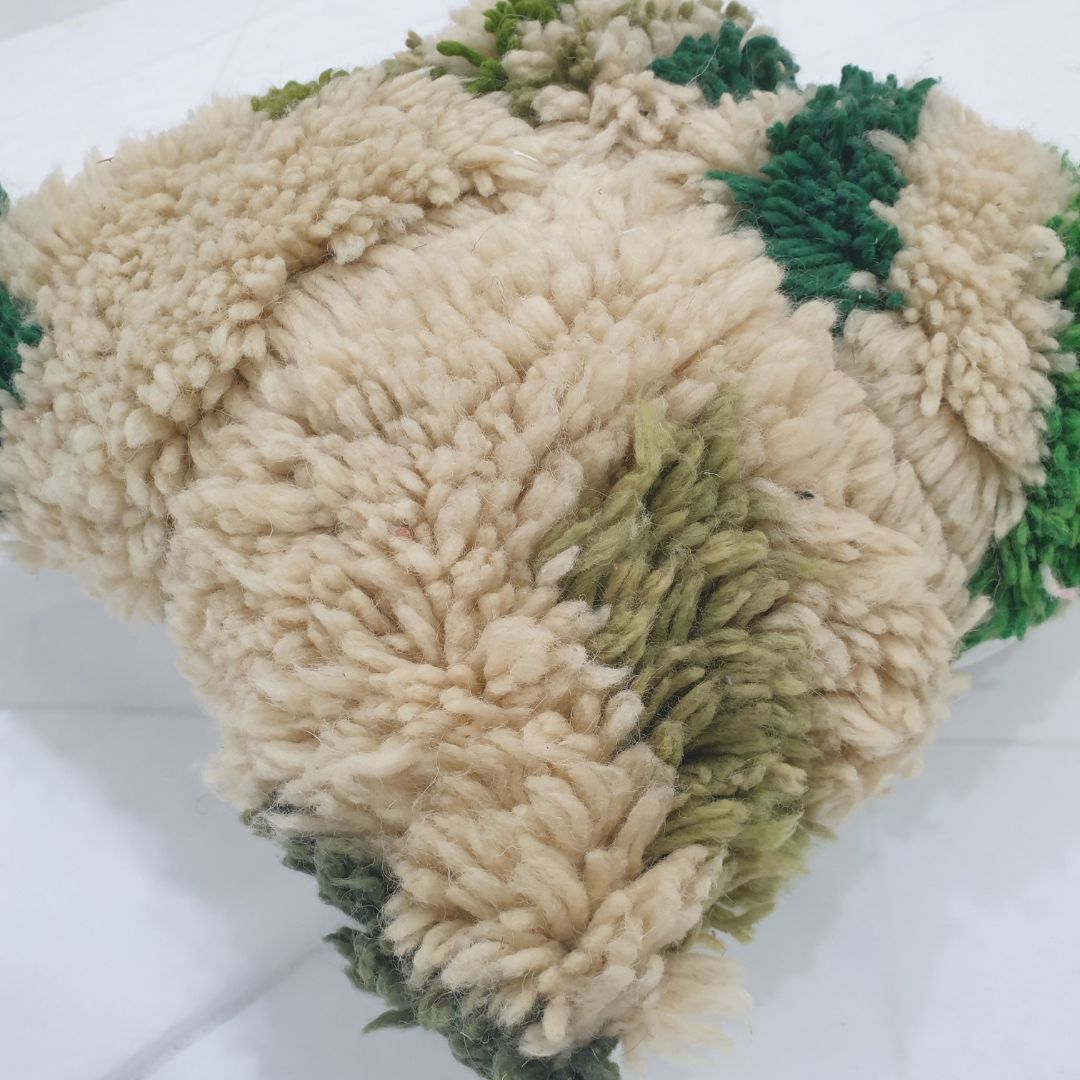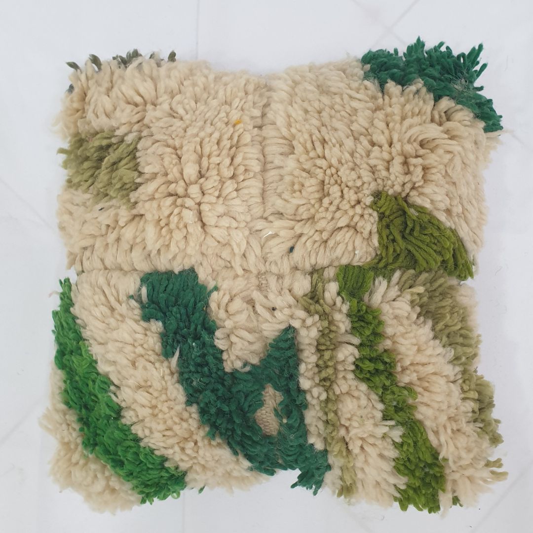 Cream Green Moroccan Cushion Cover – Cozy Beni Mrirt Artistry 16x16 inches | 40x40 cm