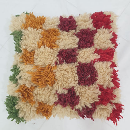 Cream Multicolor Moroccan Cushion Cover – Plush Beni Mrirt Glow 20x20 inches | 50x50 cm