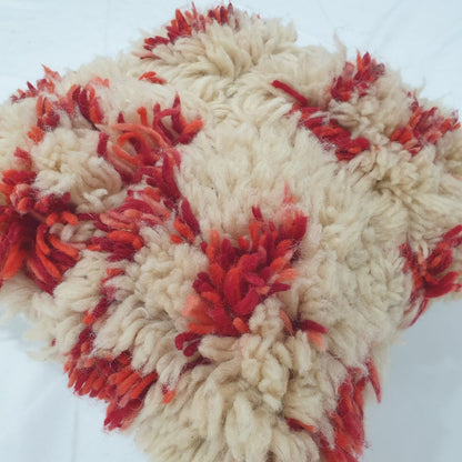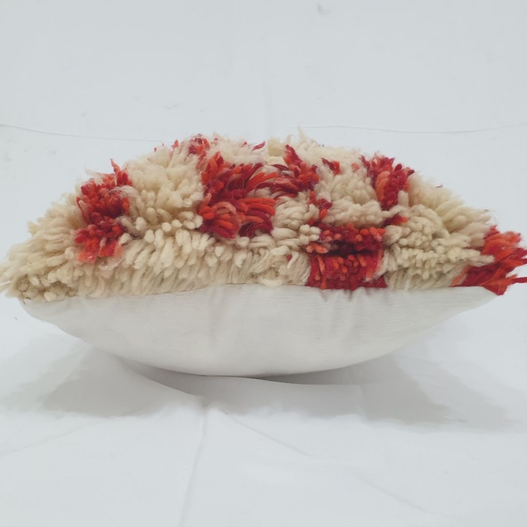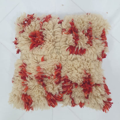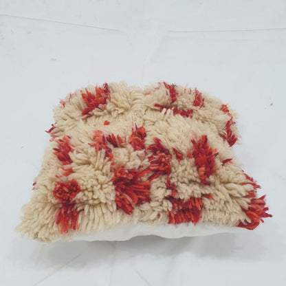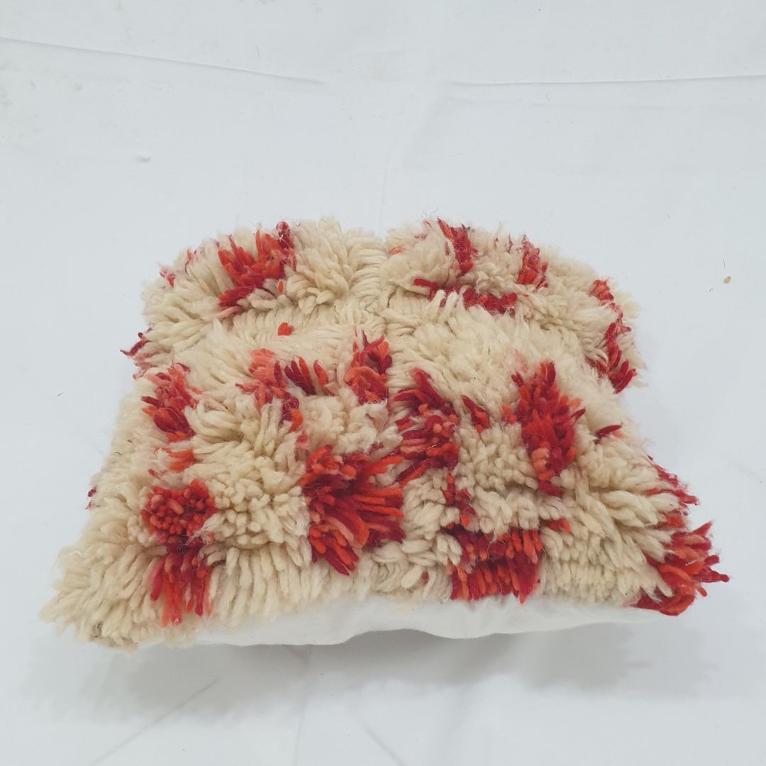 Cream Red Moroccan Cushion Cover – Luxurious Handwoven Beni Mrirt 16x15 inches | 40x38 cm