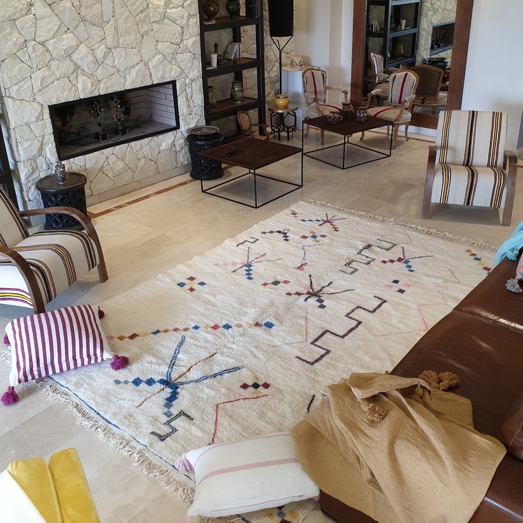 The Berber women pack the wool on the vertical loom using a metal comb, which results in a fine and silky texture of the wool that just feels heavenly on the foot, the Mrirt rugs are the most expensive due to the high quality and the quantity of the wool we use.