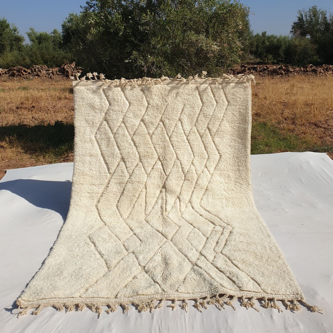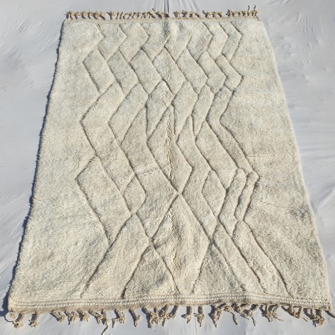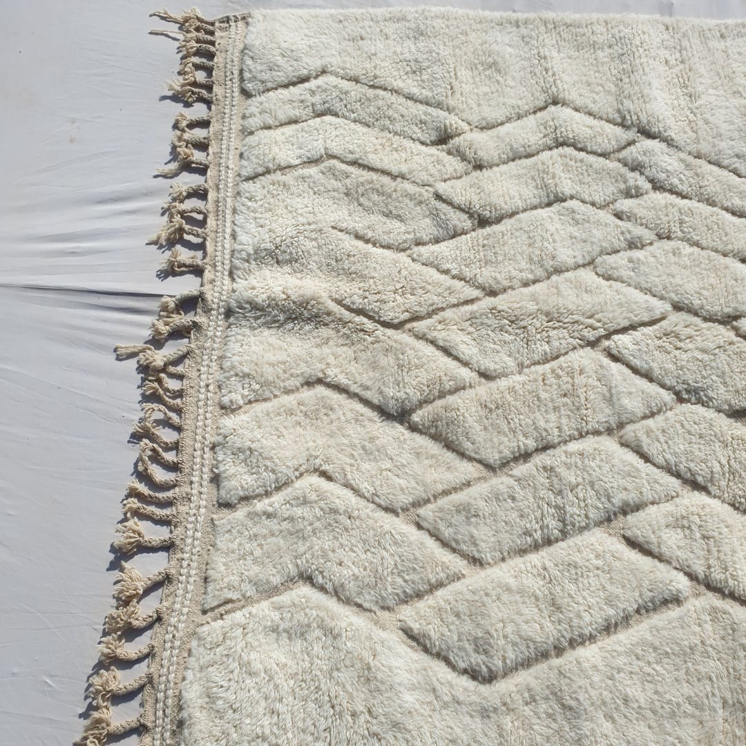 Halouz | White Moroccan rug 6x9 Authentic Ultra Soft Beni Ourain | 6'66x9'81 Ft | 200x300 cm