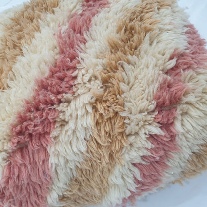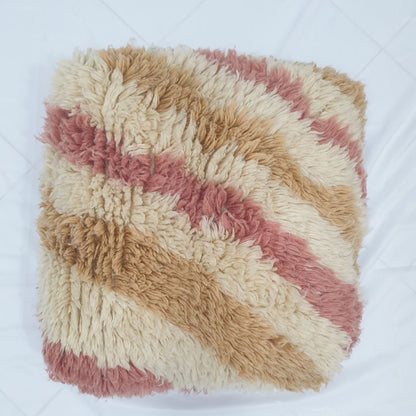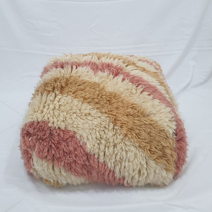 Handcrafted Luxury Moroccan Pouf – Neutral Shaggy Floor Cushion 24x24x8 inch | 60x60x20 cm