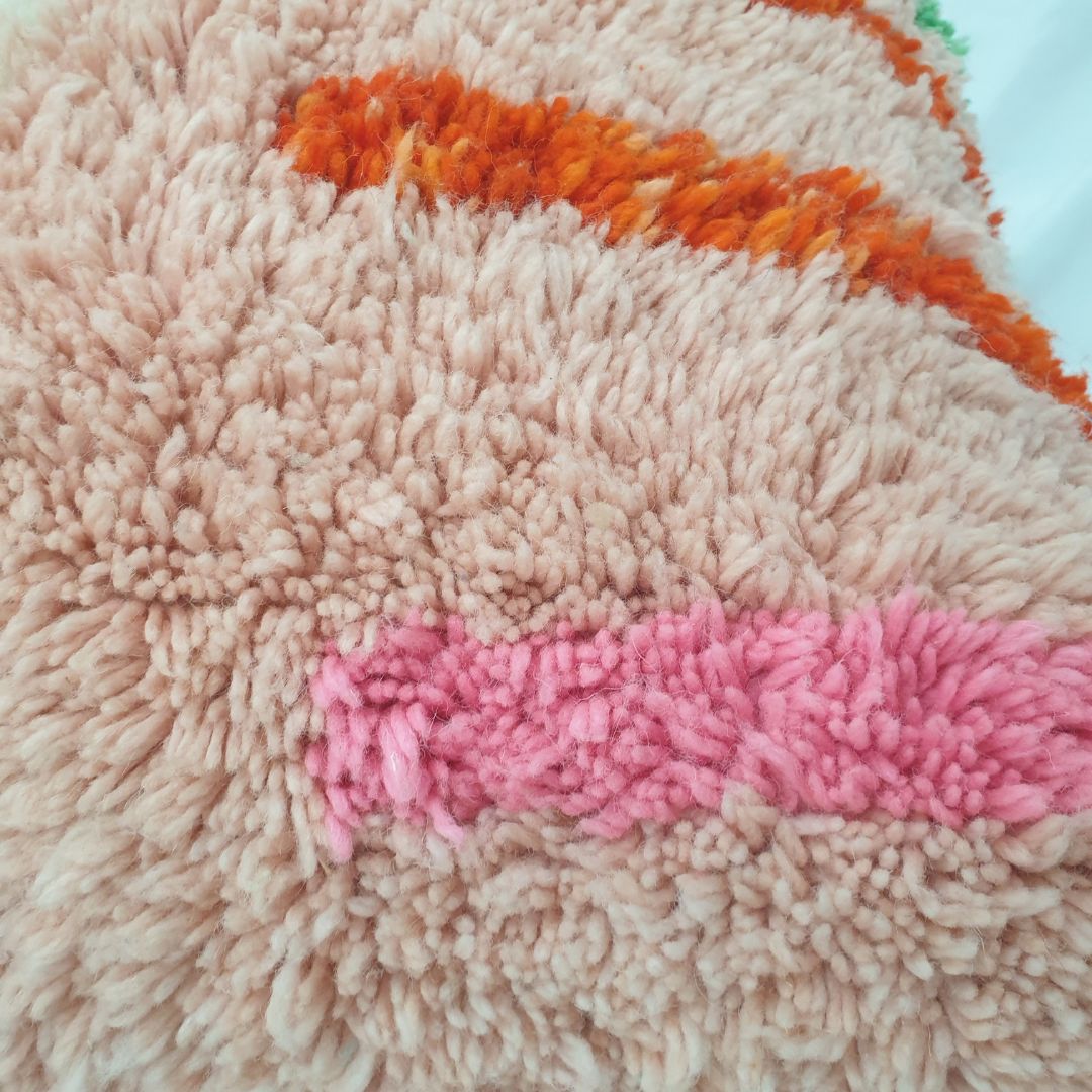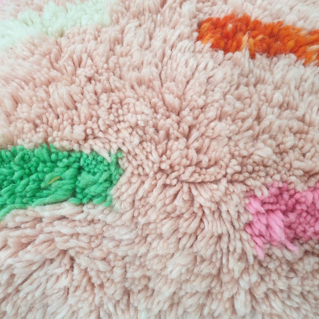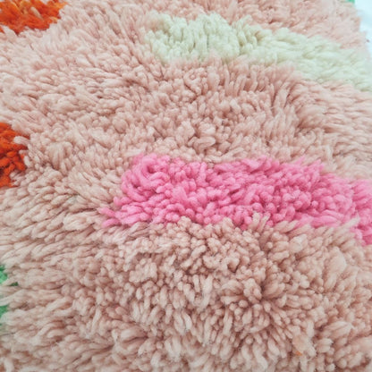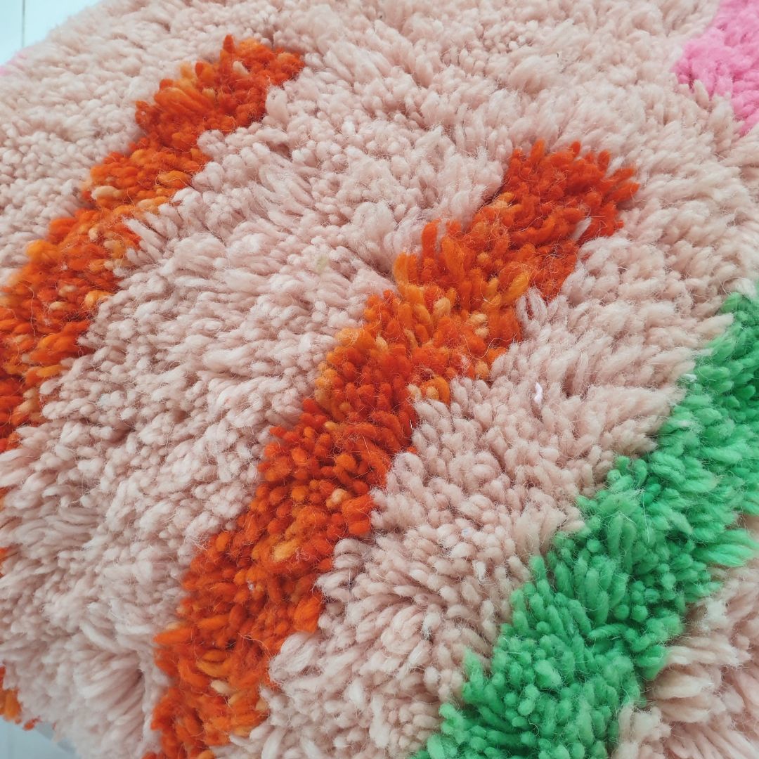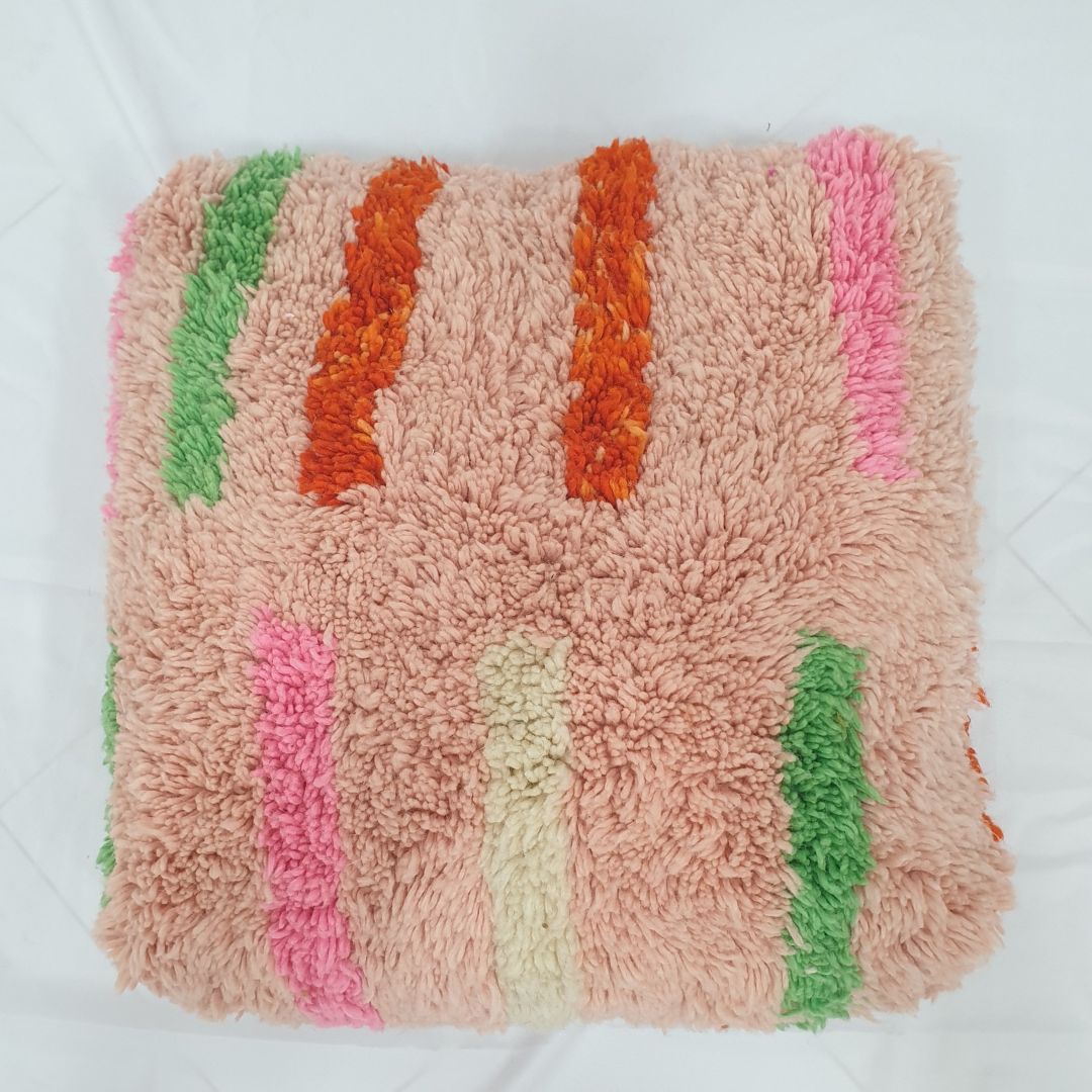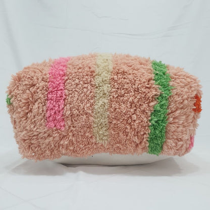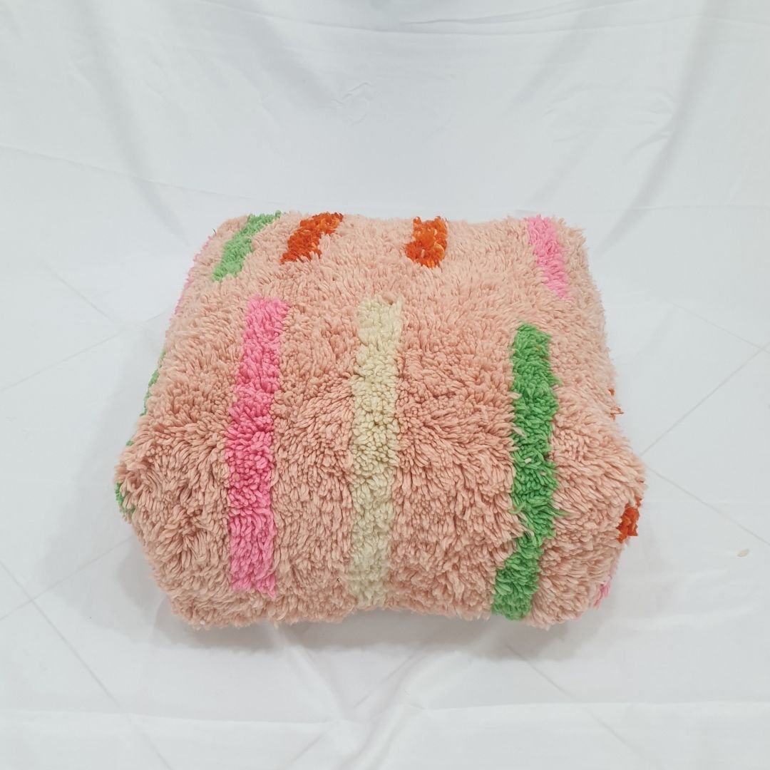 Handmade Moroccan Wool Floor Cushion – Pink Plush Pouf 24x24x8 inch | 60x60x20 cm