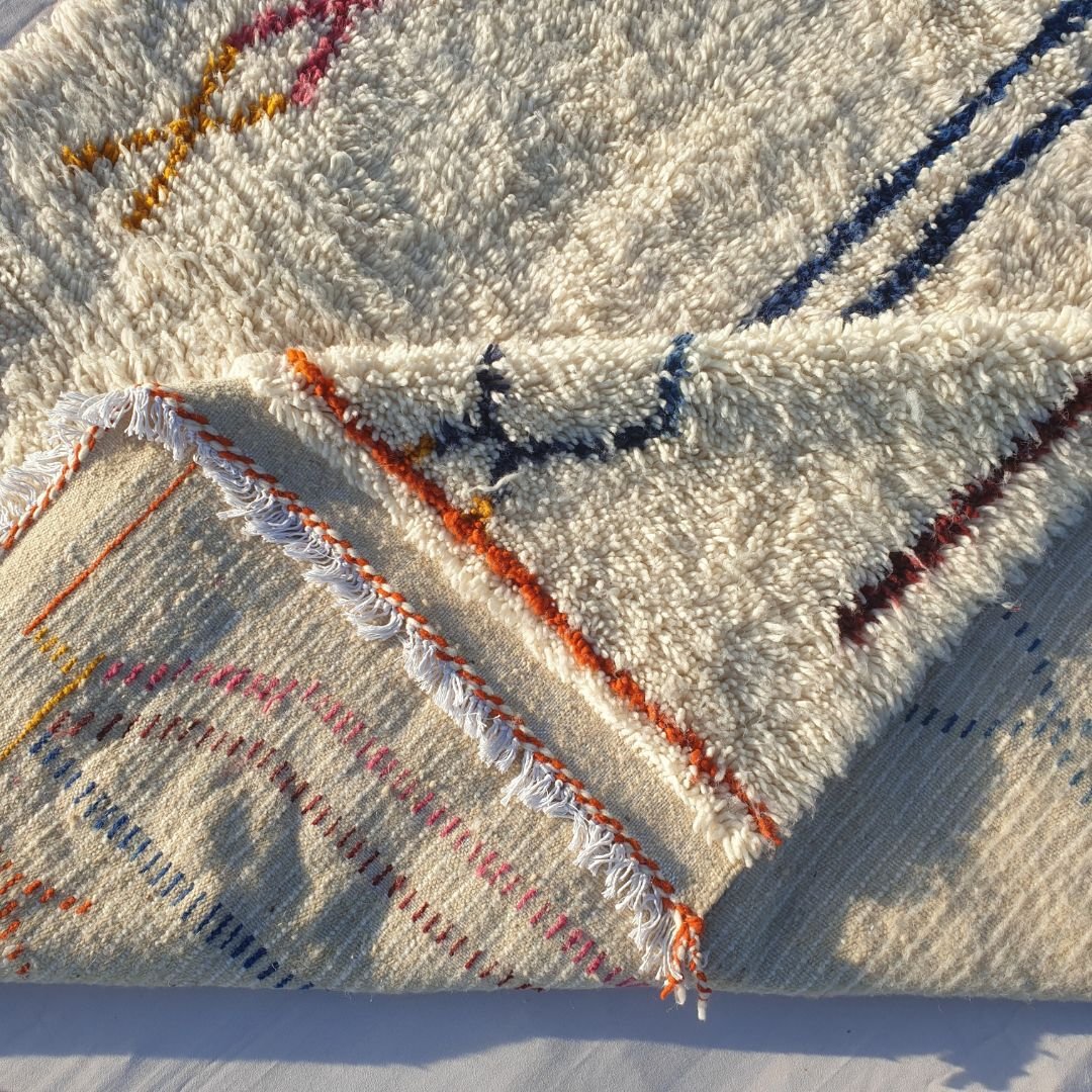 One rug takes lot of time and effort, but can tells a story of life, a story of a woman somewhere in the world trying to make her life and the one of her children better. In the heart of Azilal tribe, located in Demnat a Moroccan Berber region, one of richest parts of the Atlas Mountains, are made those pieces of arts, inspired from the beautiful flowered mountains and the flowing rivers. Azilal, the most beautiful and colorful rug. handmade for self-use or to be a gift during the winter’s long nights. The Azilal rugs reflects the richness of the region. This type of traditional carpets is usually double sided, the fluffy and warmest side for winter, the other side is for summer.