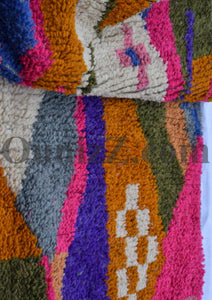 Boujaad, the Amazing Berber lightweight’s rug. The design is Inspired from the Kilim rugs. Named also Hanbal, because of its Boho, Modern, Scandinavian, and traditional Berber Moroccan style, it has only one side, it is usually used for floors or to decorate the walls of the interiors.