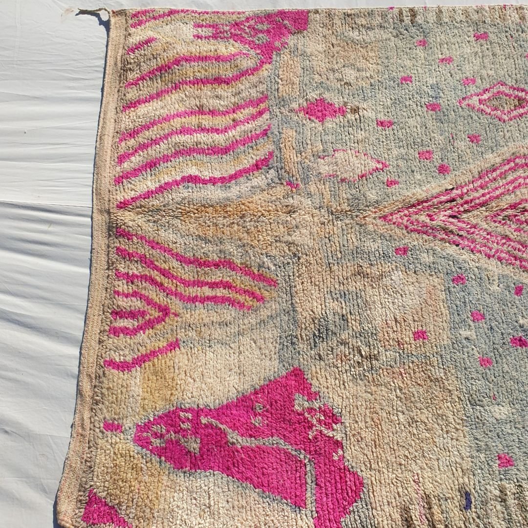 Boujaad rugs originally woven on traditional looms by Berber women in the Atlas Mountains of Morocco. These rugs are all individually handcrafted, each rug is special, unique and different, and you can never find the same pattern. They are made from natural sheep wool with natural dye, and typical knotting techniques practiced by Berber tribes - but with the knot being pulled tighter, those rugs require less wool which allows the weaver to create the intricate geometric patterns things that make Boujaad rugs famous and desired by the whole word and perfect for any indoor or outdoor style.