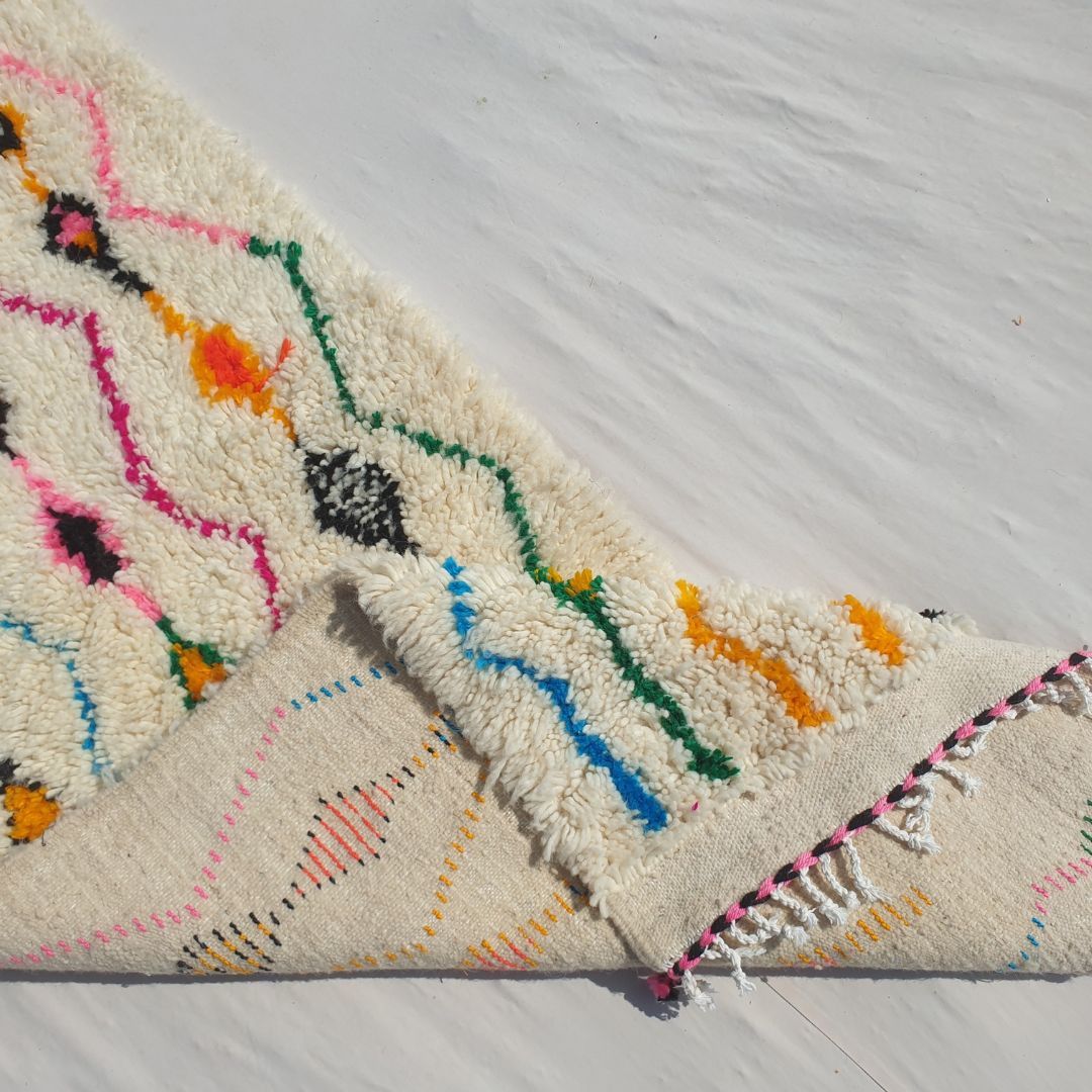 One rug takes lot of time and effort, but can tells a story of life, a story of a woman somewhere in the world trying to make her life and the one of her children better. In the heart of Azilal tribe, located in Demnat a Moroccan Berber region, one of richest parts of the Atlas Mountains, are made those pieces of arts, inspired from the beautiful flowered mountains and the flowing rivers. Azilal, the most beautiful and colorful rug. handmade for self-use or to be a gift during the winter’s long nights. The Azilal rugs reflects the richness of the region. This type of traditional carpets is usually double sided, the fluffy and warmest side for winter, the other side is for summer.