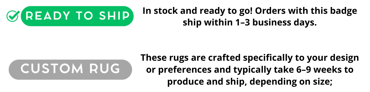 Once you place your order, we begin the process of creating your custom rug. This involves dyeing the wool and hand-weaving the rug, which takes 6-10 weeks to complete. After your rug is ready, we prepare it for shipping and hand it over to DHL, just like our ready-to-ship rugs. You'll receive a tracking number by email once it's shipped.