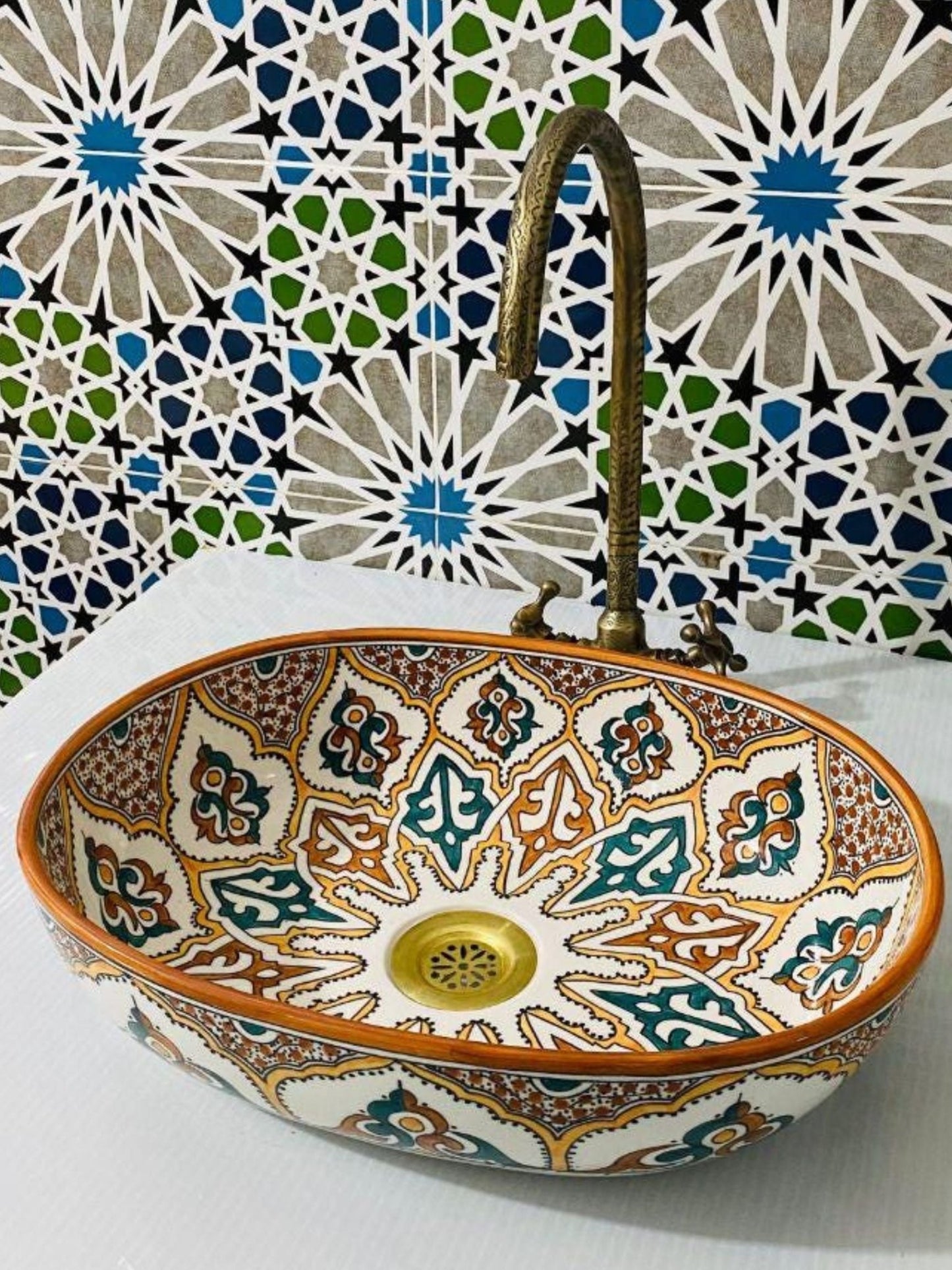 Marrakech - Handcrafted Oval Ceramic Vanity Sink – Artisan-Made Bathroom Basin - (ETAT)