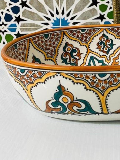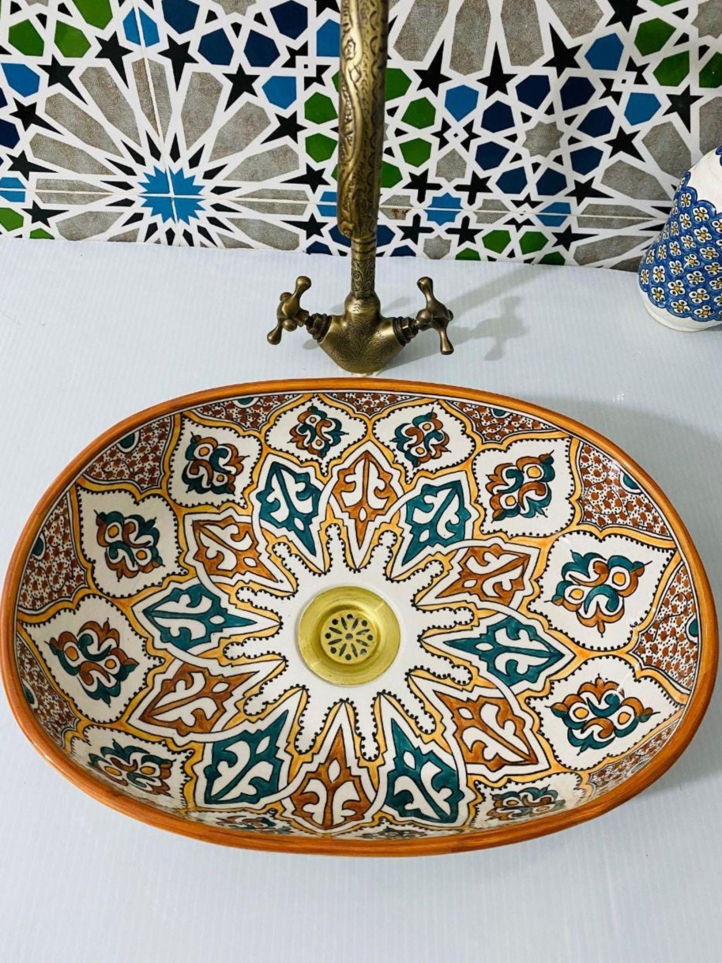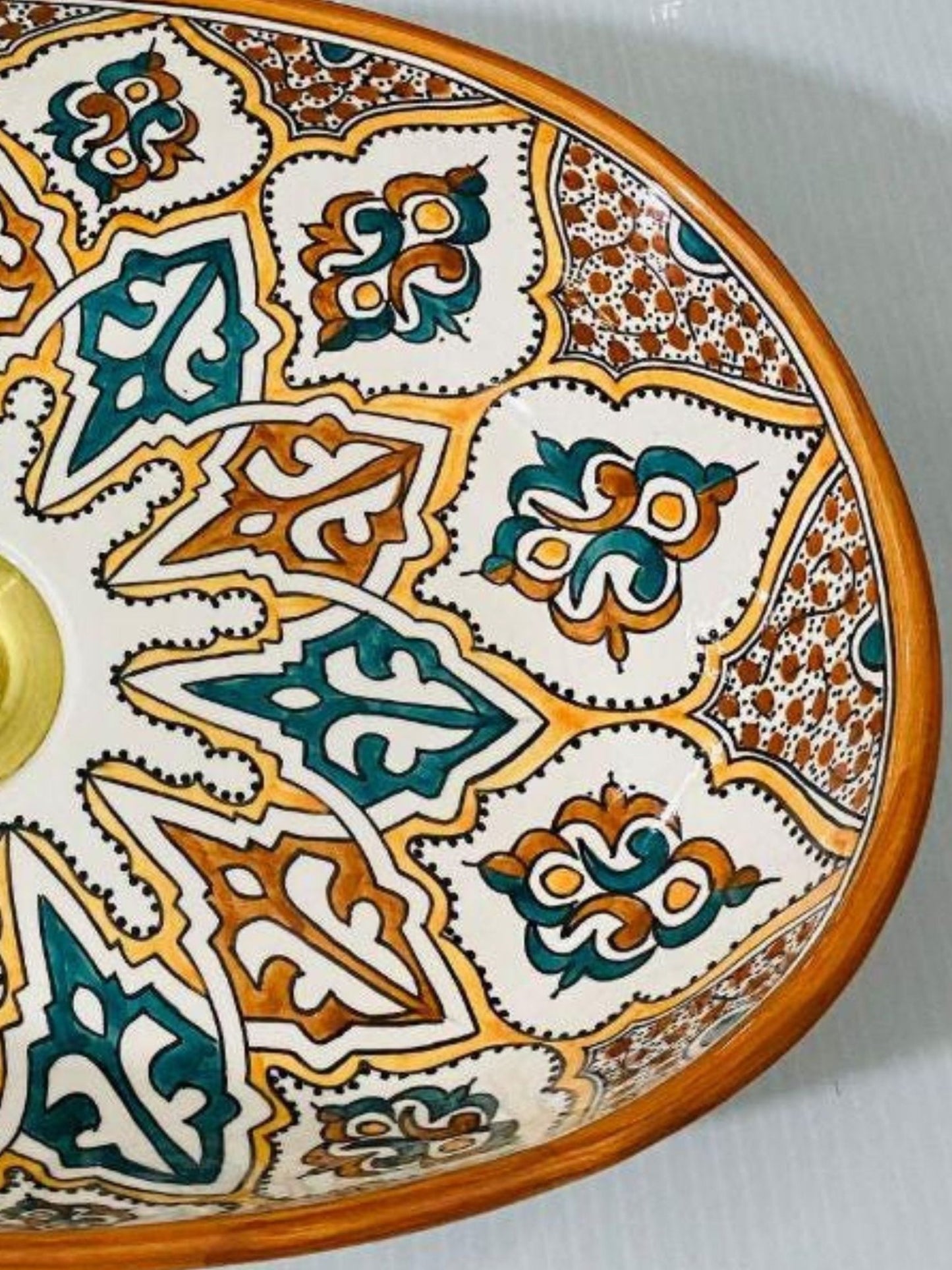 Madrid - Handmade Moroccan Oval Ceramic Sink – Teal and Orange Top Counter Vessel Sink - (ETFS)