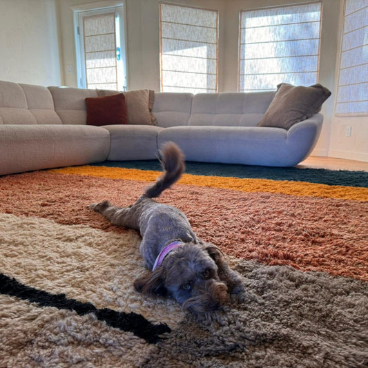 For wool Moroccan rugs, it is recommended to use a vacuum without a beater bar no more than four times a month. Wool fibers are delicate and can shed easily under harsh treatment. For detailed care instructions, please visit our Cleaning Instructions page.