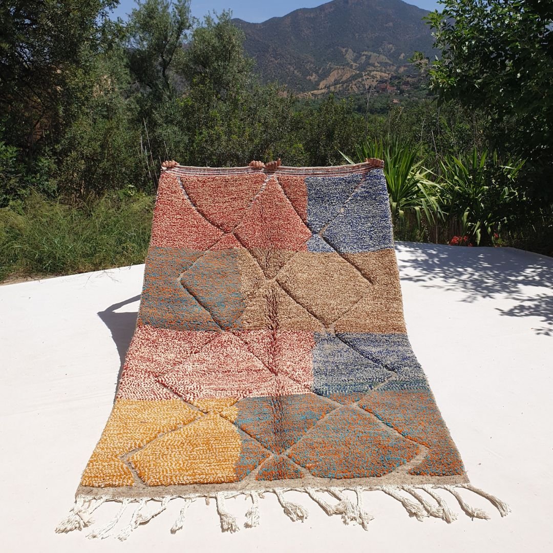 - How do I maintain my Beni Ouarain rug? Regular vacuuming and occasional professional cleaning are recommended. For more detailed care instructions, visit our cleaning instruction page here : Cleaning Moroccan Rugs.