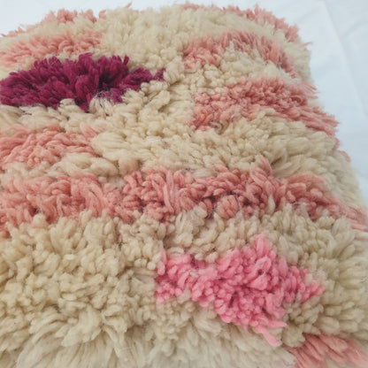 Add a warm, artisanal touch to your home with this handmade Moroccan wool cushion cover, meticulously crafted from 100% new, never-used Berber rugs. Each piece is one-of-a-kind, cut from authentic Moroccan rugs woven by skilled artisans in the Atlas Mountains, ensuring a luxuriously soft and textured finish. Perfect for boho, shabby chic, or eclectic interiors, this pillow cover brings cozy elegance to your sofa, bed, or outdoor lounge.