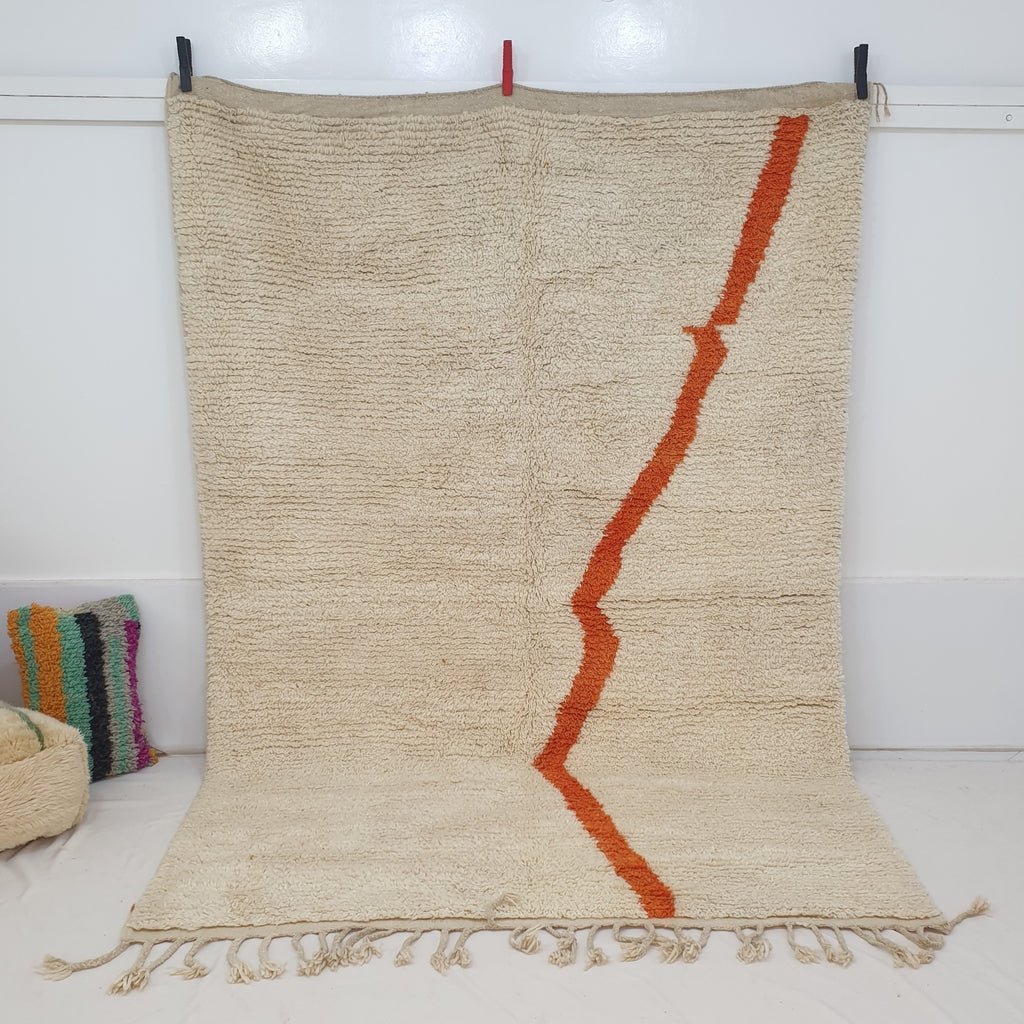 Boujaad, the Amazing Berber lightweight’s rug. The design is Inspired from the Kilim rugs. Named also Hanbal, because of its Boho, Modern, Scandinavian, and traditional Berber Moroccan style, it has only one side, it is usually used for floors or to decorate the walls of the interiors.