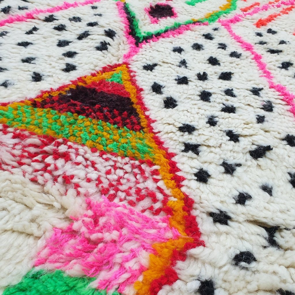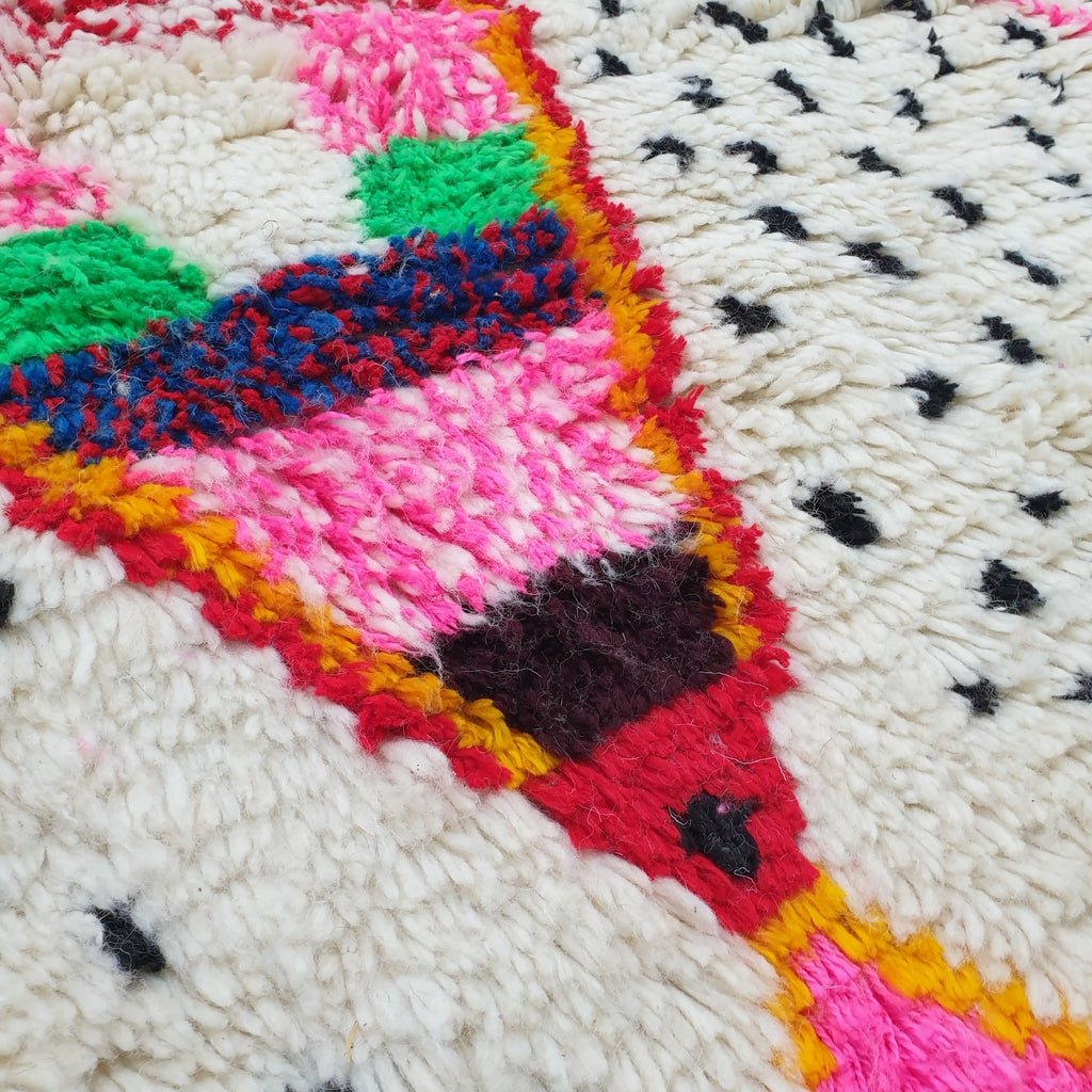 One rug takes lot of time and effort, but can tells a story of life, a story of a woman somewhere in the world trying to make her life and the one of her children better. In the heart of Azilal tribe, located in Demnat a Moroccan Berber region, one of richest parts of the Atlas Mountains, are made those pieces of arts, inspired from the beautiful flowered mountains and the flowing rivers. Azilal, the most beautiful and colorful rug. handmade for self-use or to be a gift during the winter’s long nights. The Azilal rugs reflects the richness of the region. This type of traditional carpets is usually double sided, the fluffy and warmest side for winter, the other side is for summer.