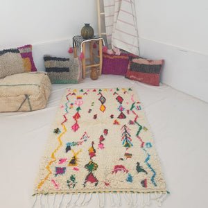 Moroccan White Rug Azilal | SAFIT | 5'6x3'3 Ft | 1,70x1,00 m | 100% wool handmade