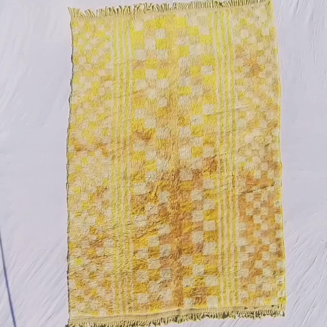 Mouassine | Checkered Yellow Moroccan Rug 6x9 Beni Ourain Ultra Soft | Authentic Berber wool Beni Rug | 6'53x9'74 Ft | 199x297 cm