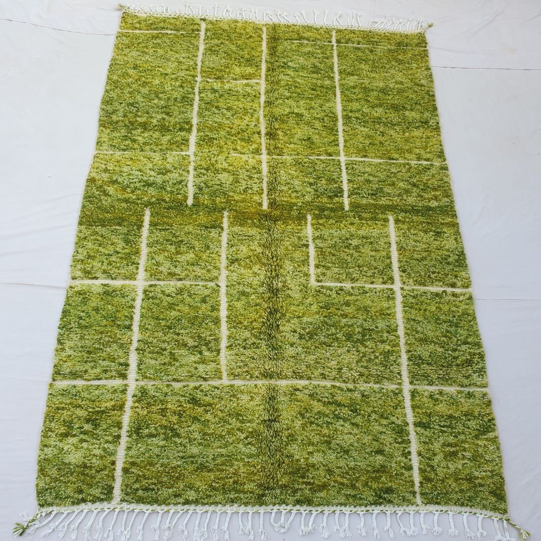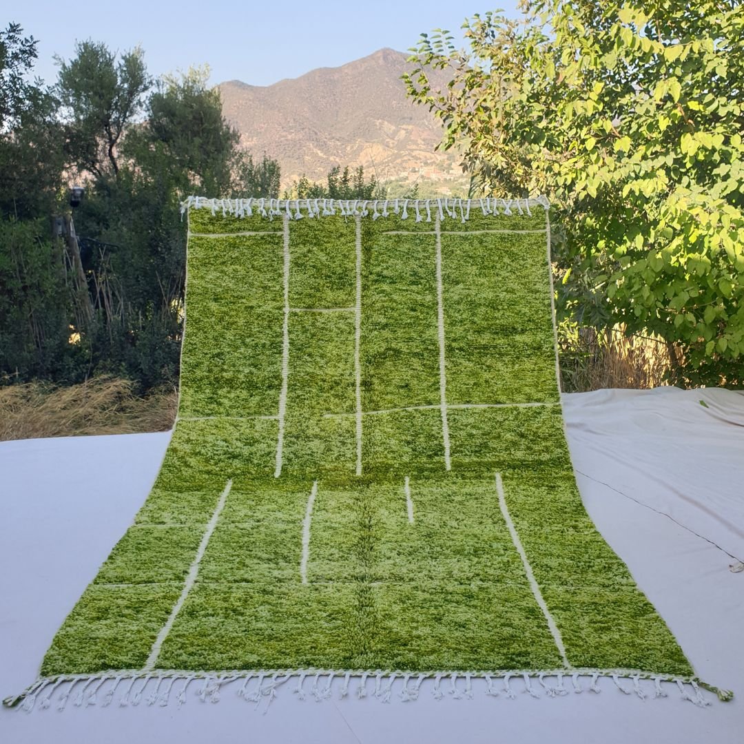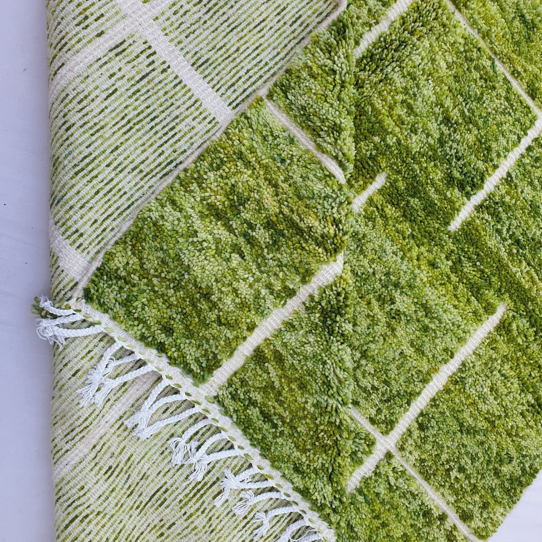 Mataha | Sage Green Checkered Moroccan Rug 6x10 Beni Ourain Ultra Soft | Authentic Berber wool Beni Rug | 6'53x10'37 Ft | 199x316 cm