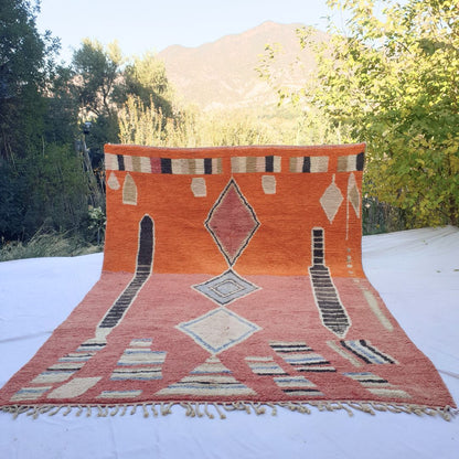 Boujad rugs originally woven on traditional looms by Berber women in the Atlas Mountains of Morocco. These rugs are all individually handcrafted, each rug is special, unique and different, and you can never find the same pattern. They are made from natural sheep wool with natural dye, and typical knotting techniques practiced by Berber tribes - but with the knot being pulled tighter, those rugs require less wool which allows the weaver to create the intricate geometric patterns things that make Boujad rugs famous and desired by the whole word and perfect for any indoor or outdoor style.