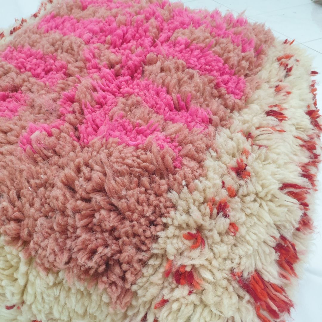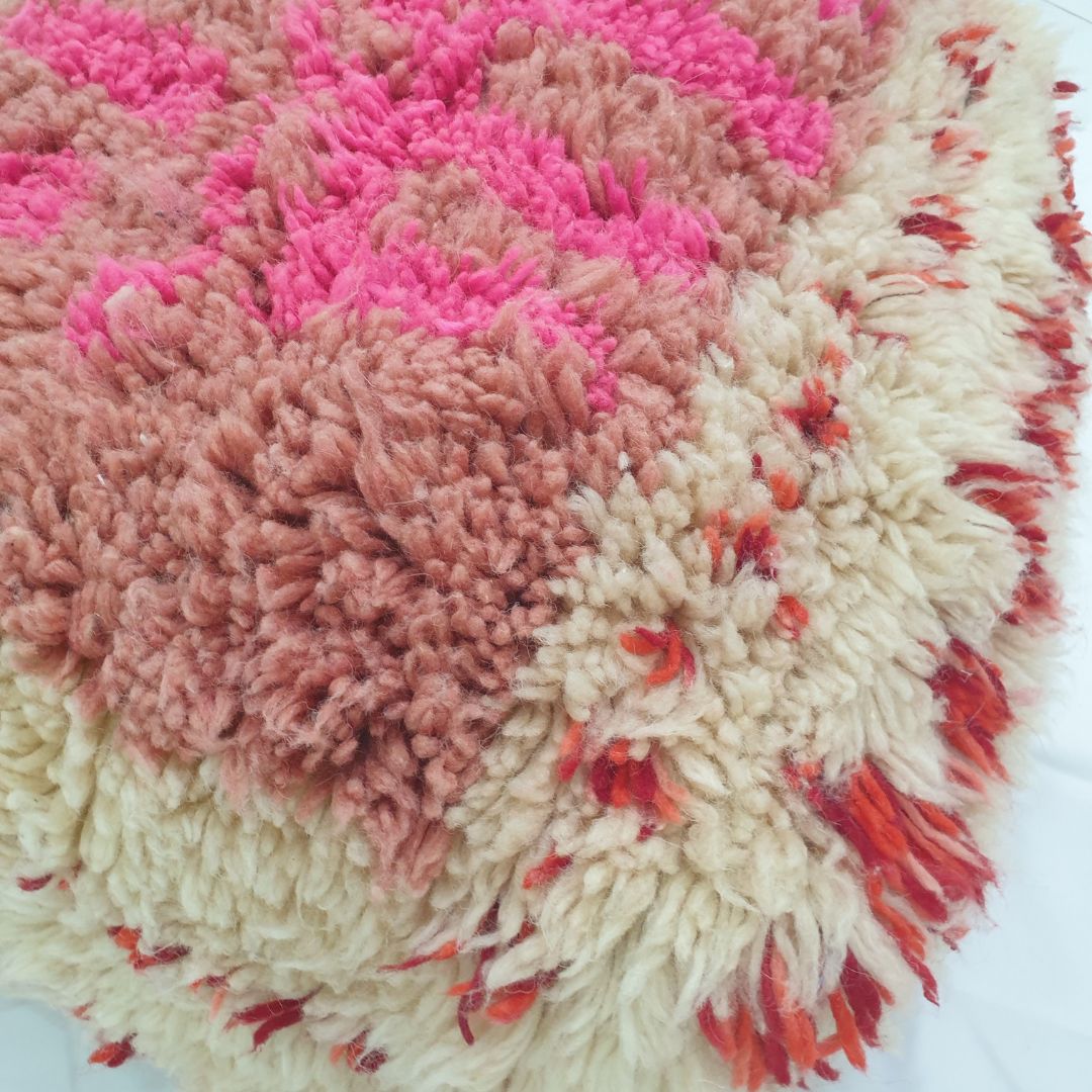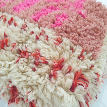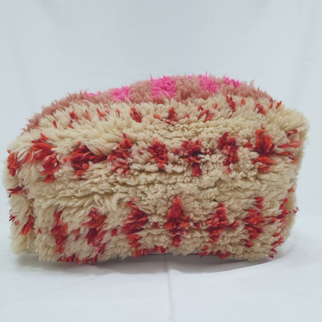 Playful Handwoven Moroccan Pouf – Vibrant Pink Red Floor Cushion 24x24x8 inch | 60x60x20 cm