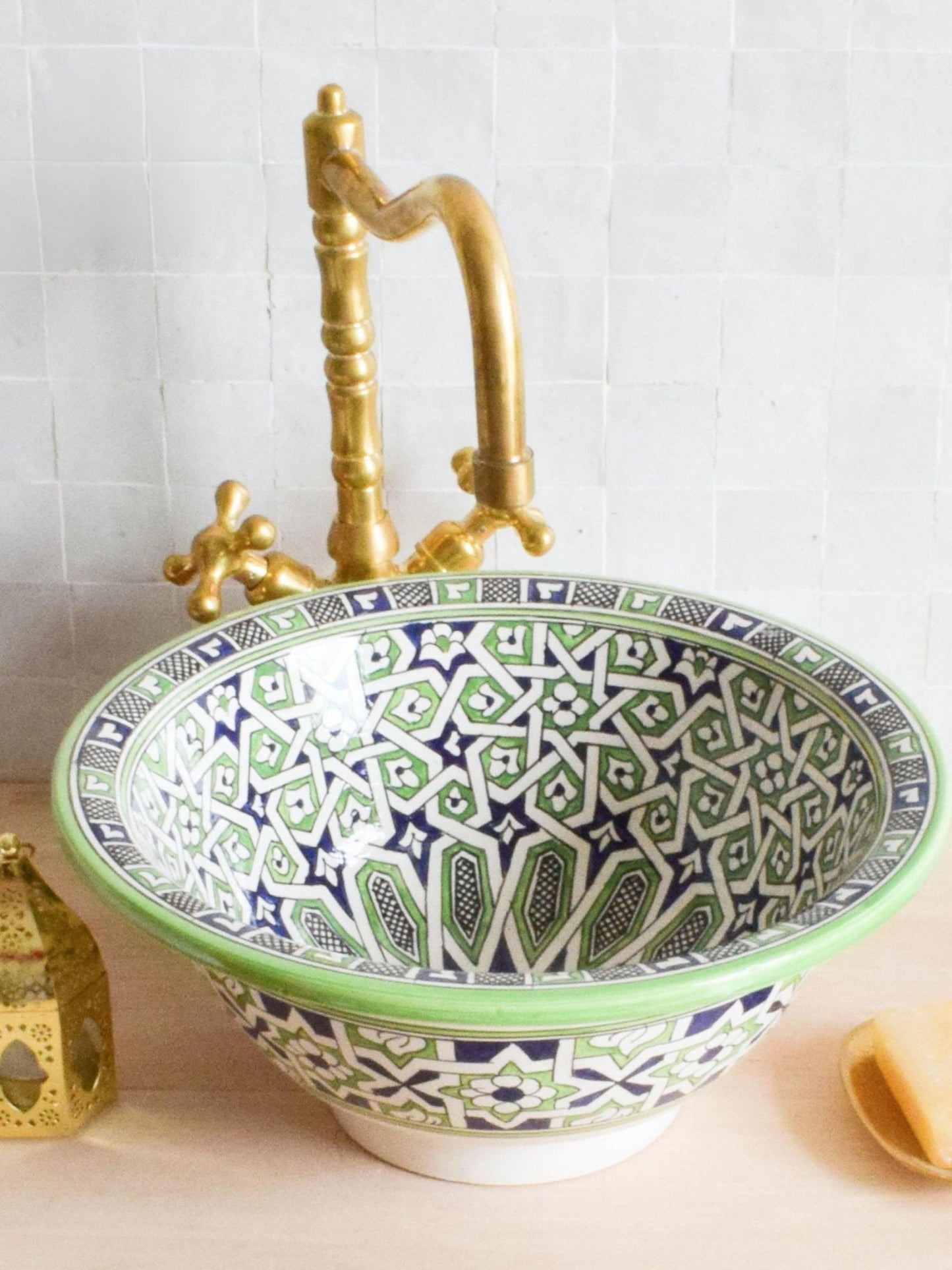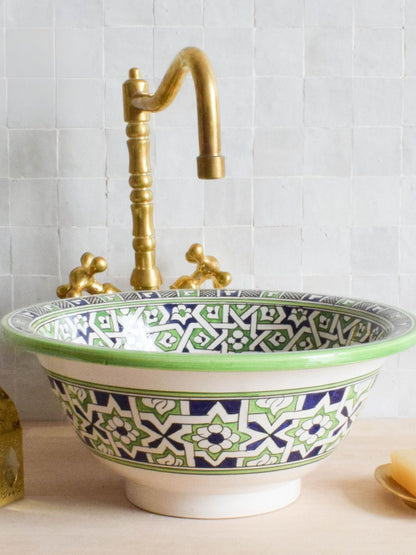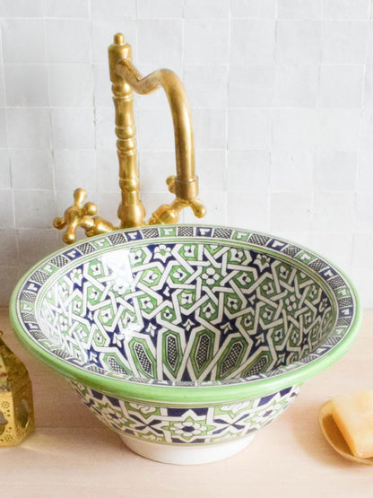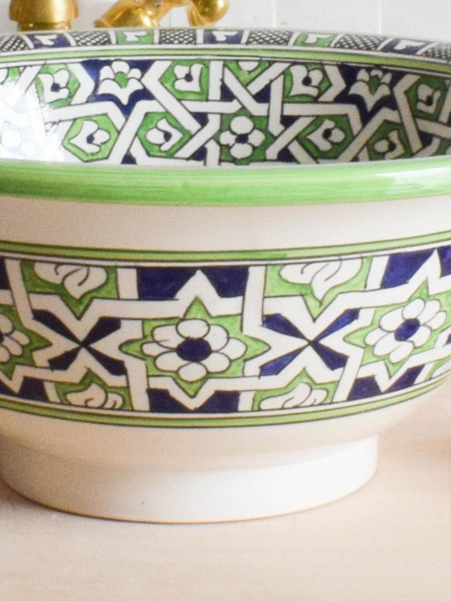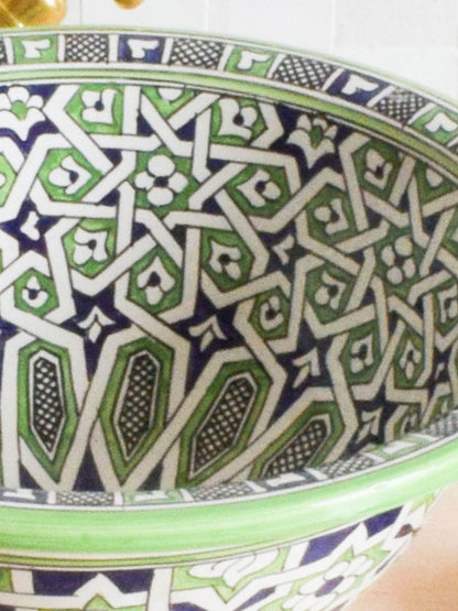 Dublin - Moroccan Round Bathroom Sink – Handmade Ceramic Green Sink for Vanity - (ETAT)
