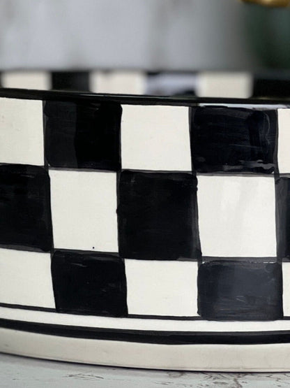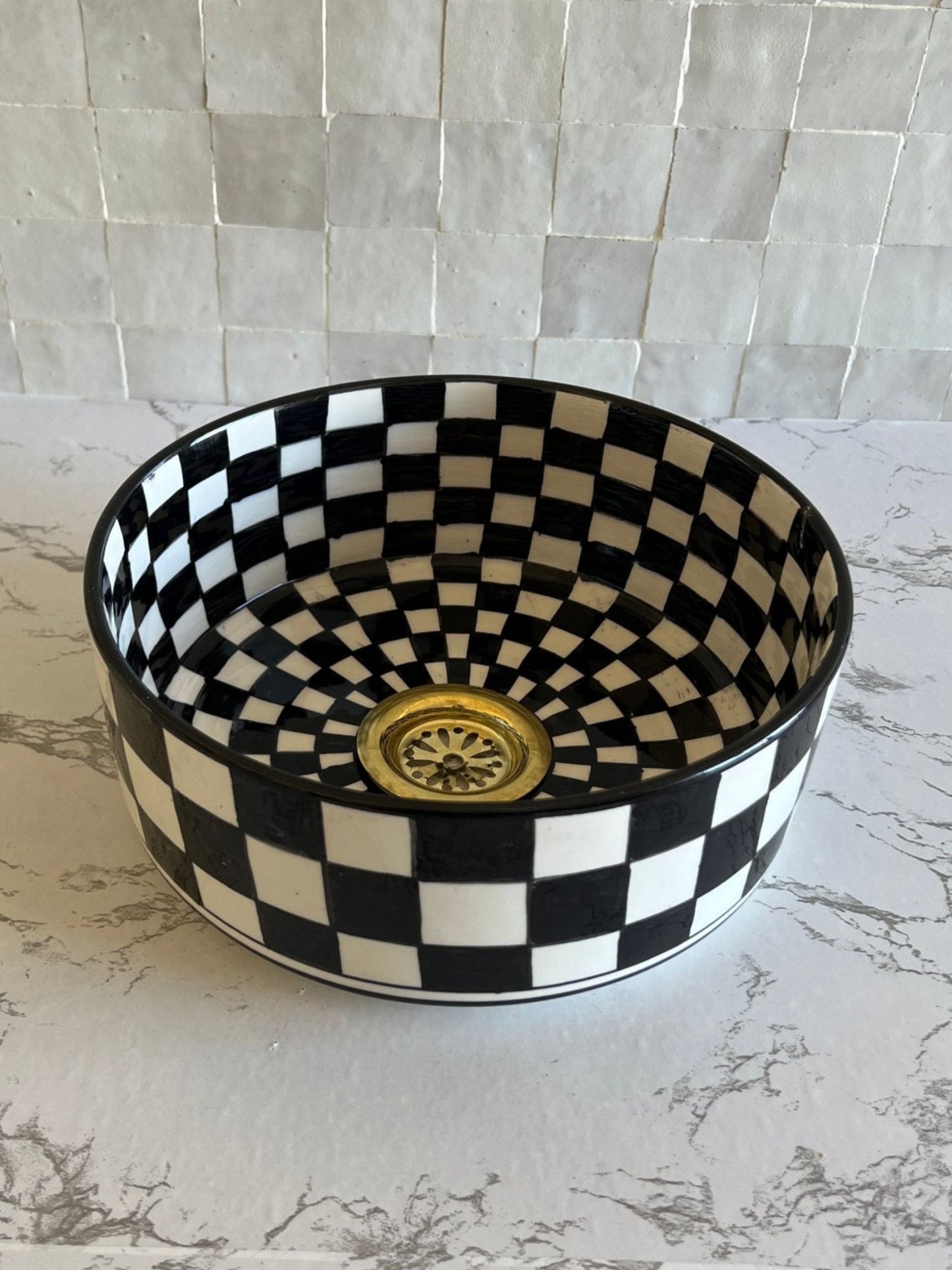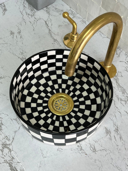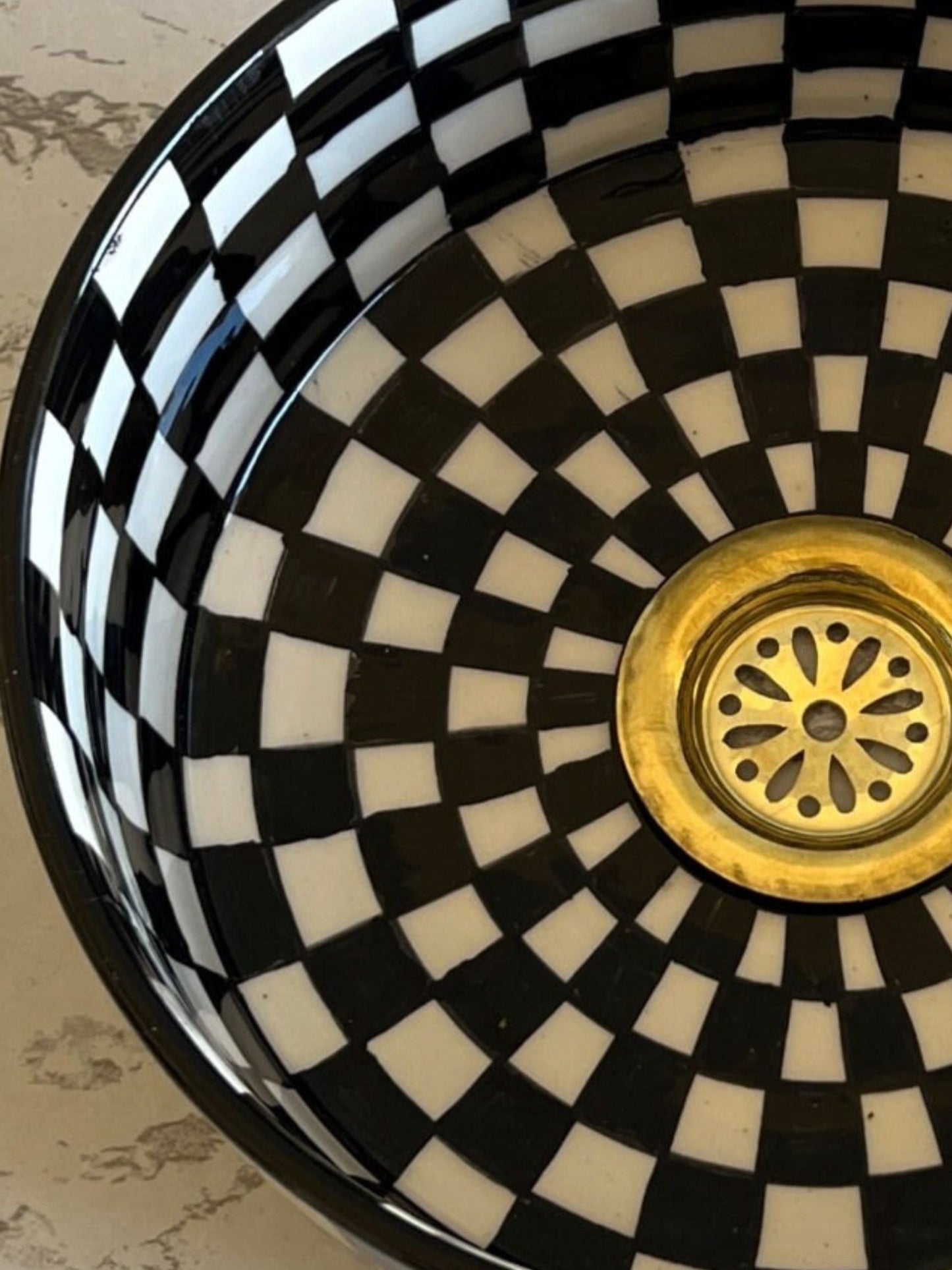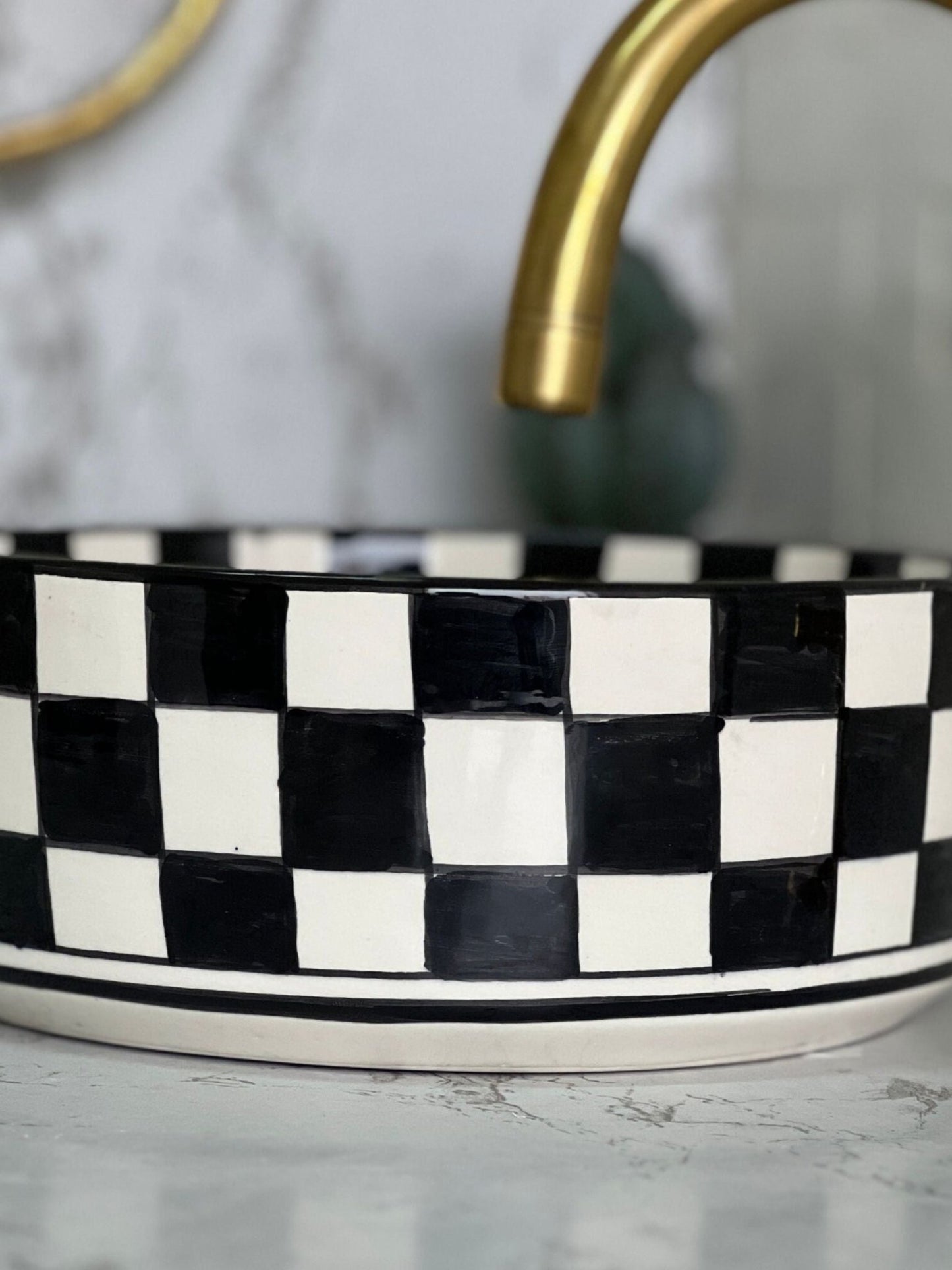 Rabat - Handmade Moroccan Ceramic Sink – Black and White Checkered Bathroom Vessel Sink - (ESEN)
