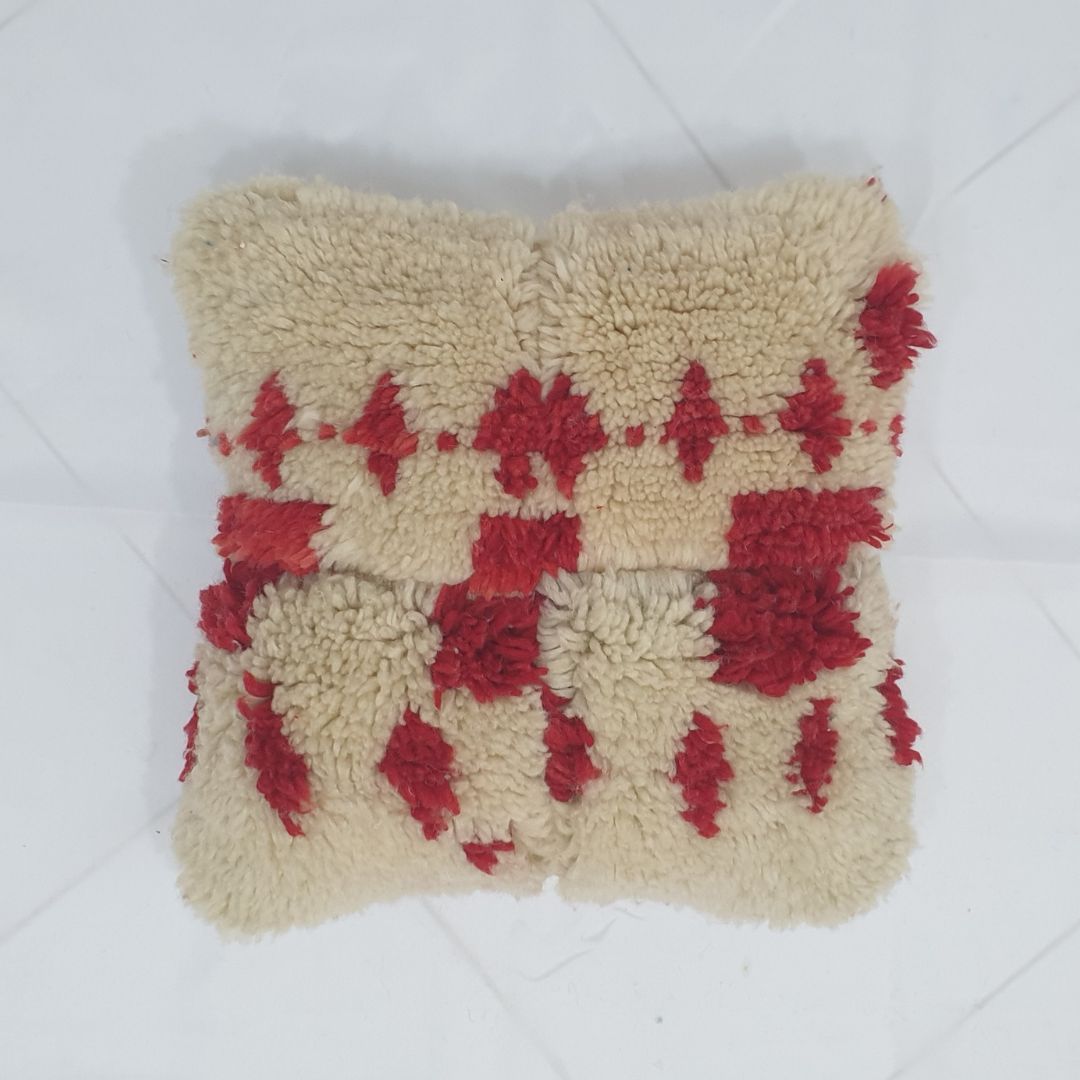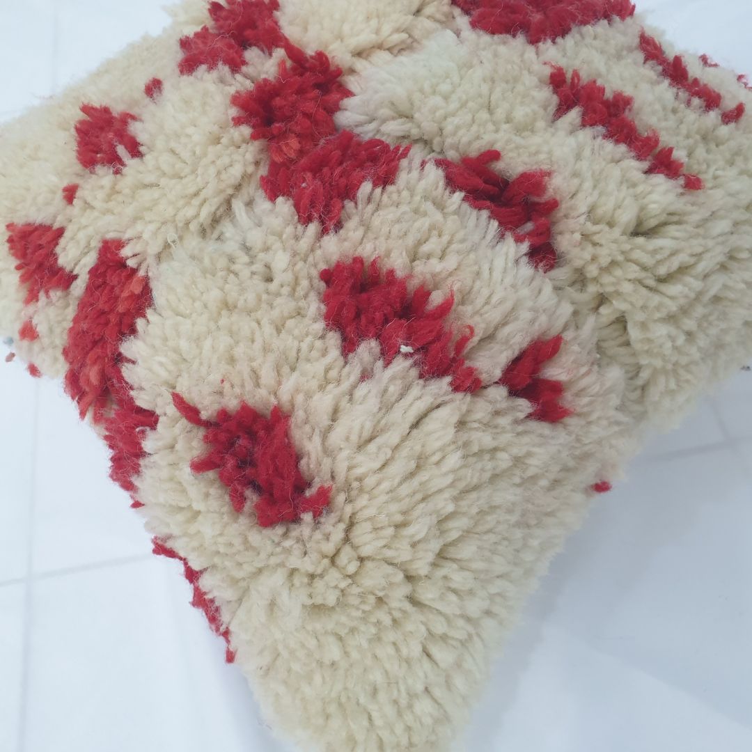 Red Patchwork Moroccan Wool Cushion Cover – One-of-a-Kind Artisan Accent