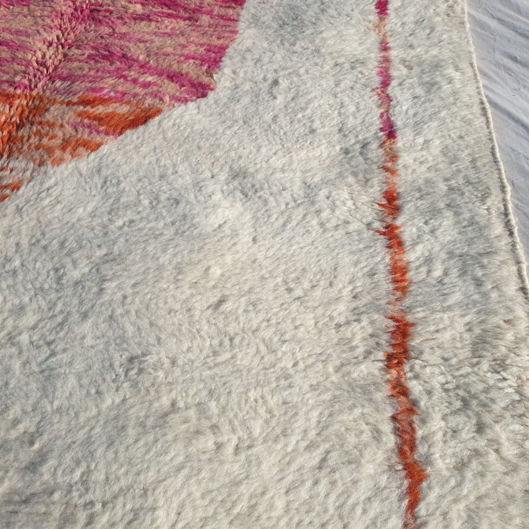 The classic Beni Ourain, the best rug for all interiors and all designs. Ait Ouaraïn is small but famous tribe in the east of Taza city in the Middle atlas, they only use soft and thick natural wool to make the best handmade spark for your space. The colors and styles are inspired from the snowy and Rocky Mountains of the middle atlas.