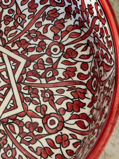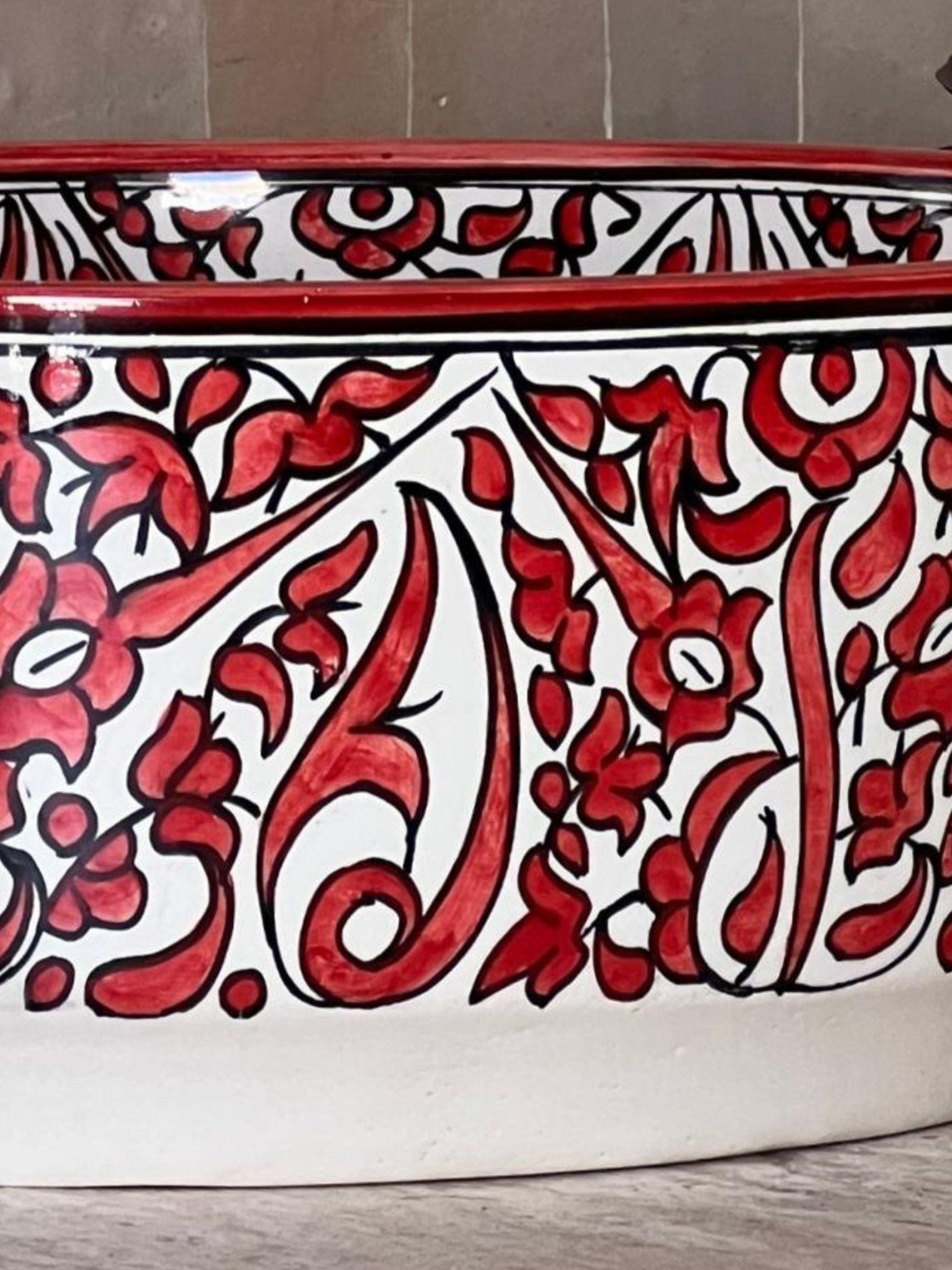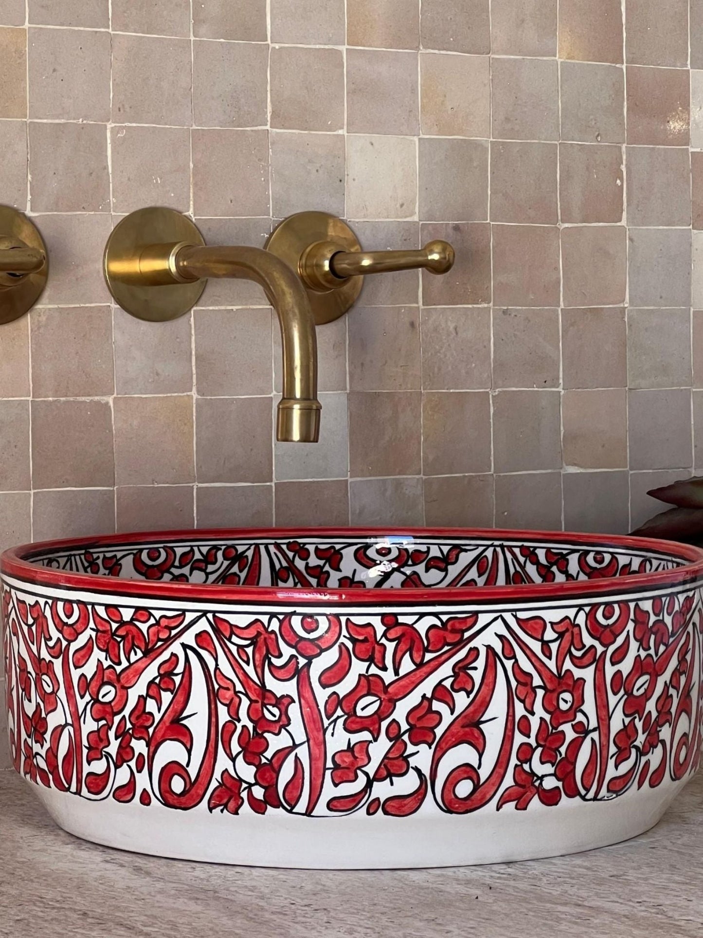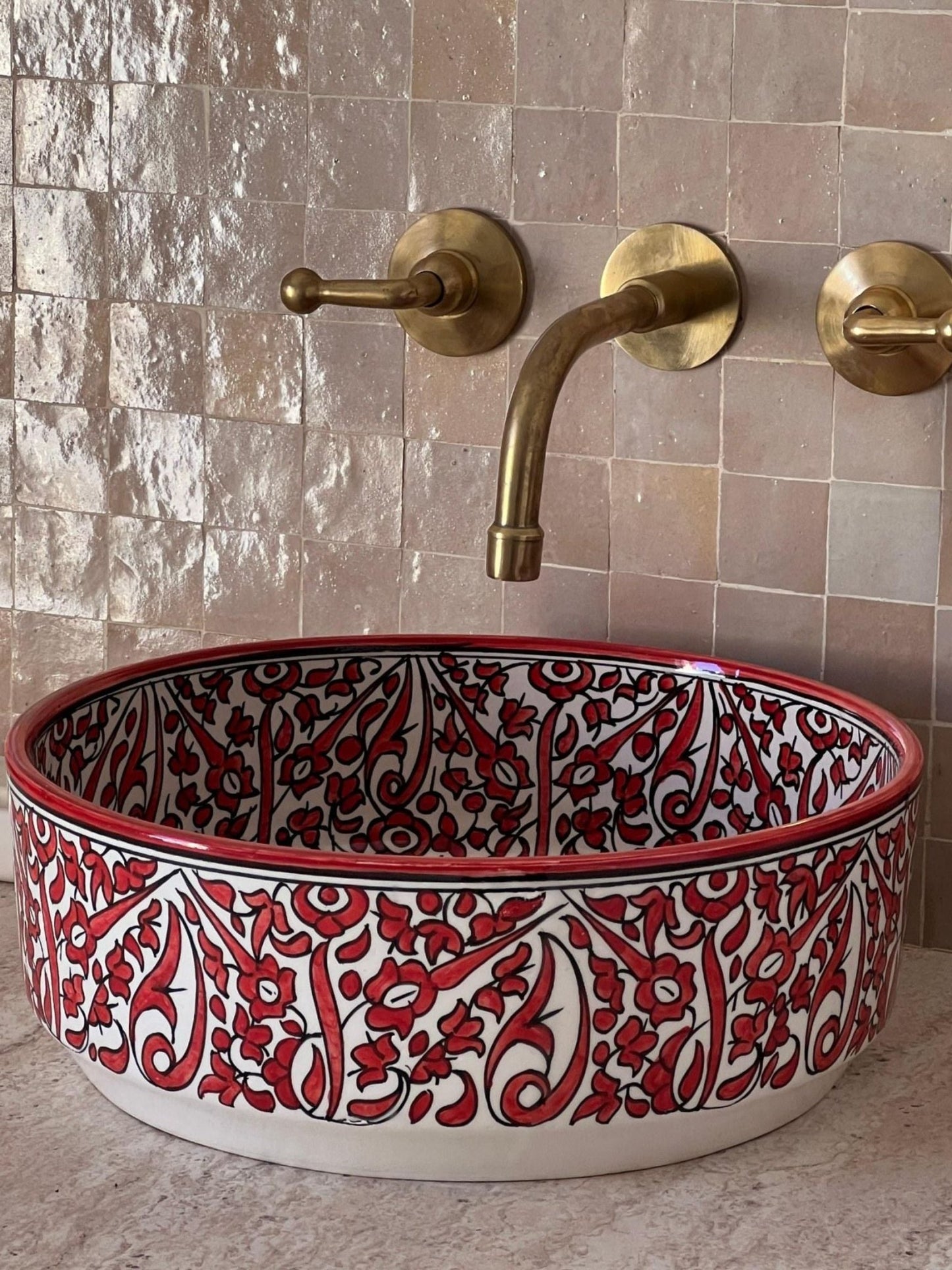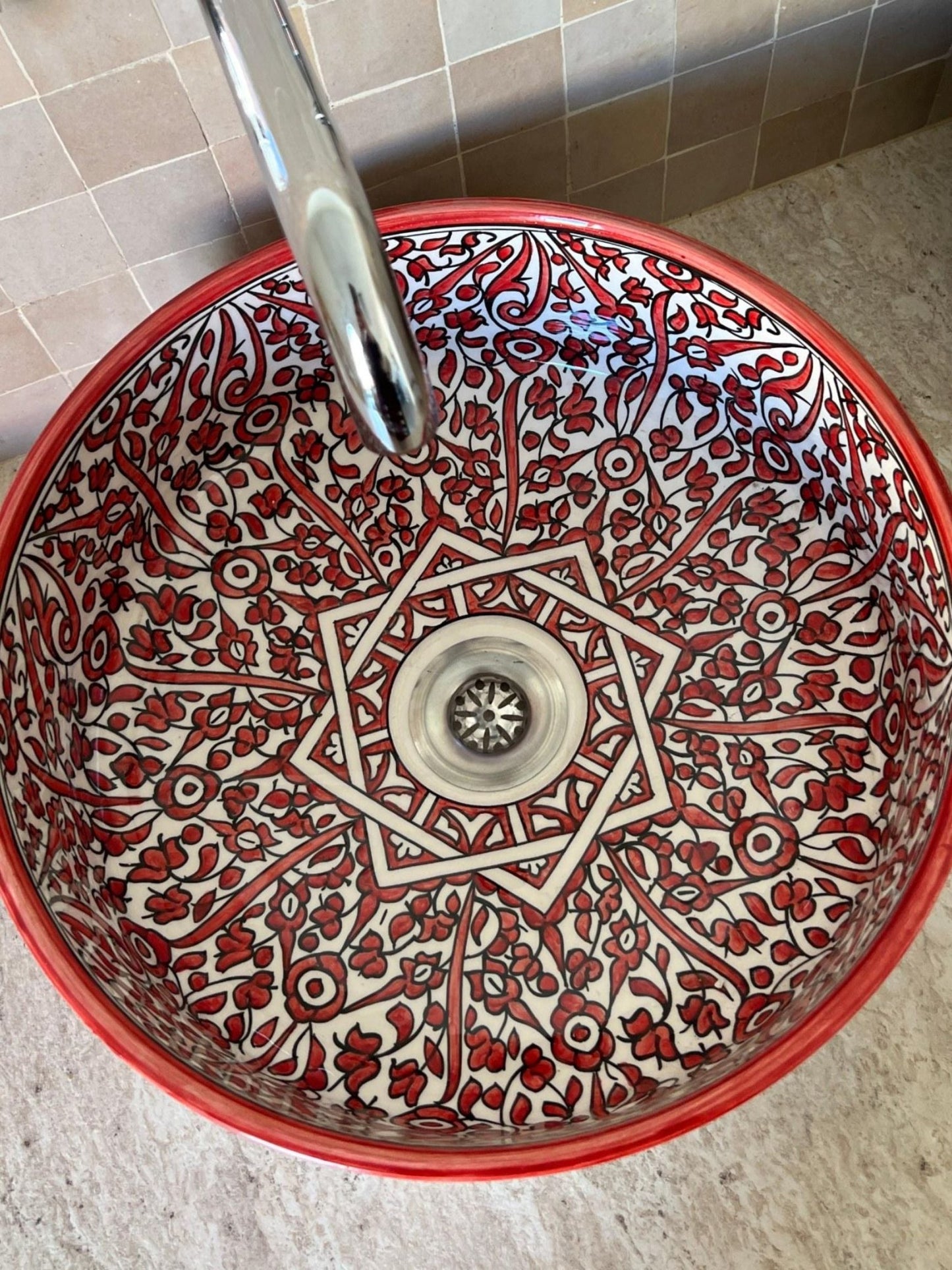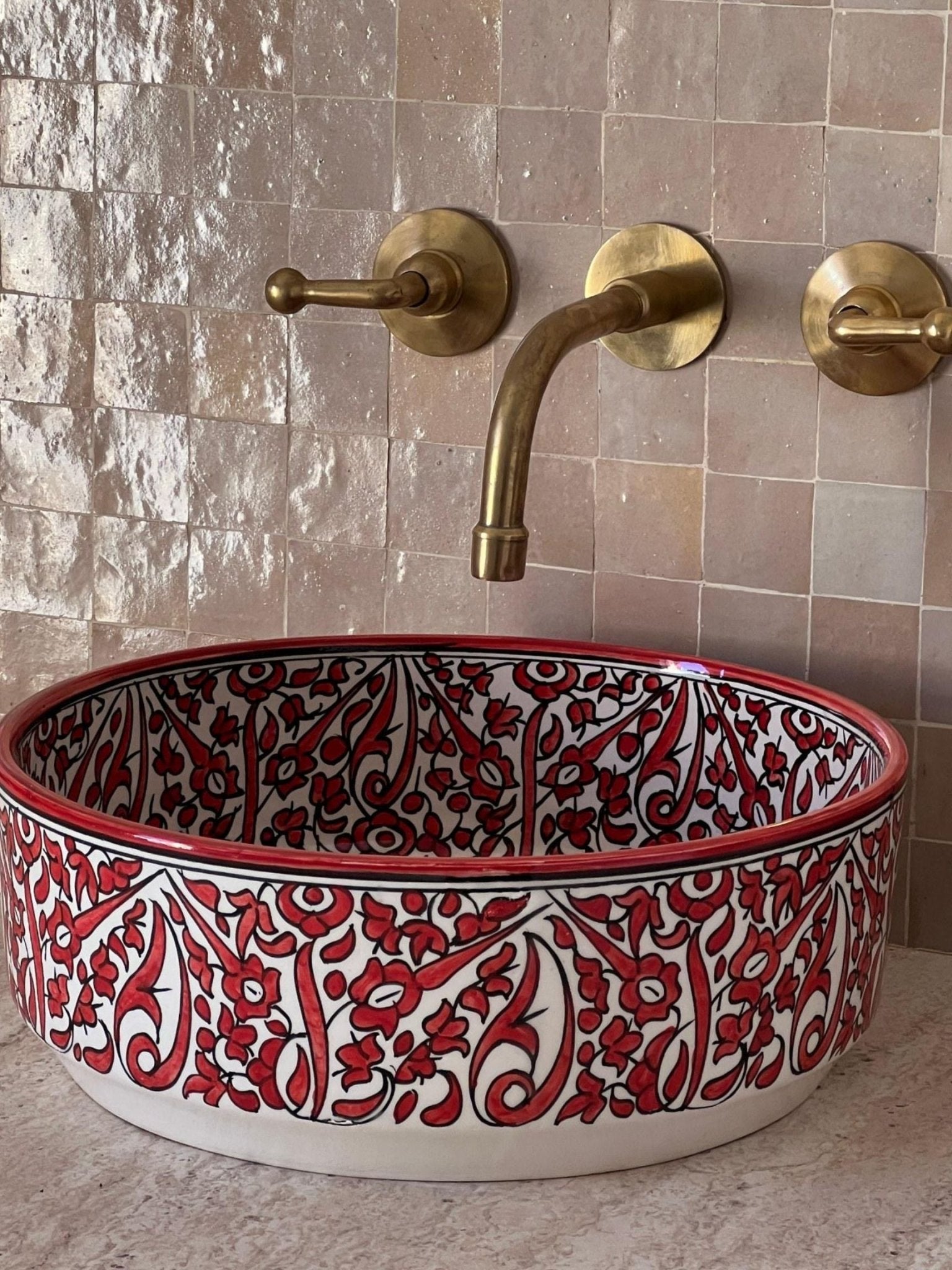 Tangier - Handmade Moroccan Ceramic Sink – Red and White Floral Bathroom Vessel Sink - (ESEN)