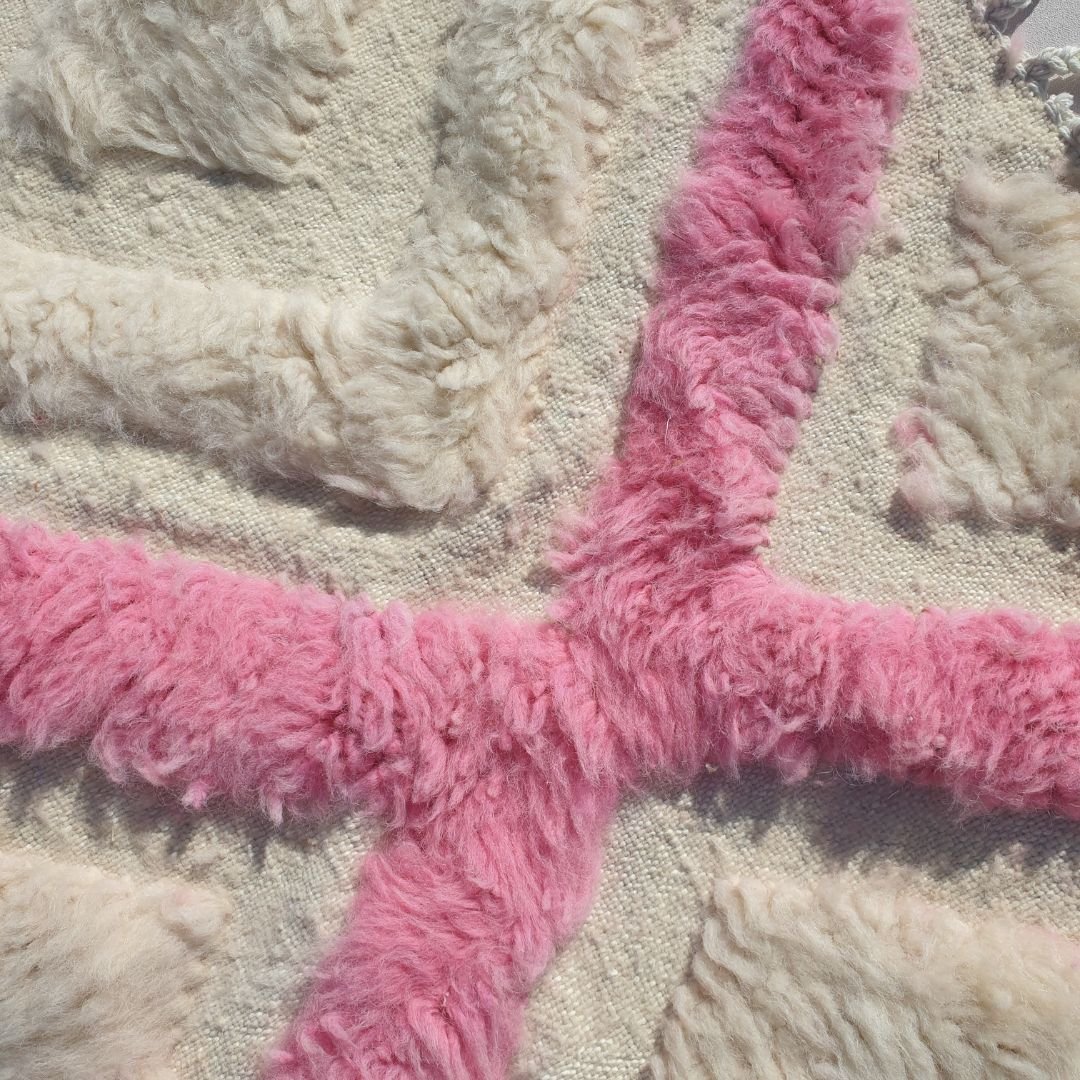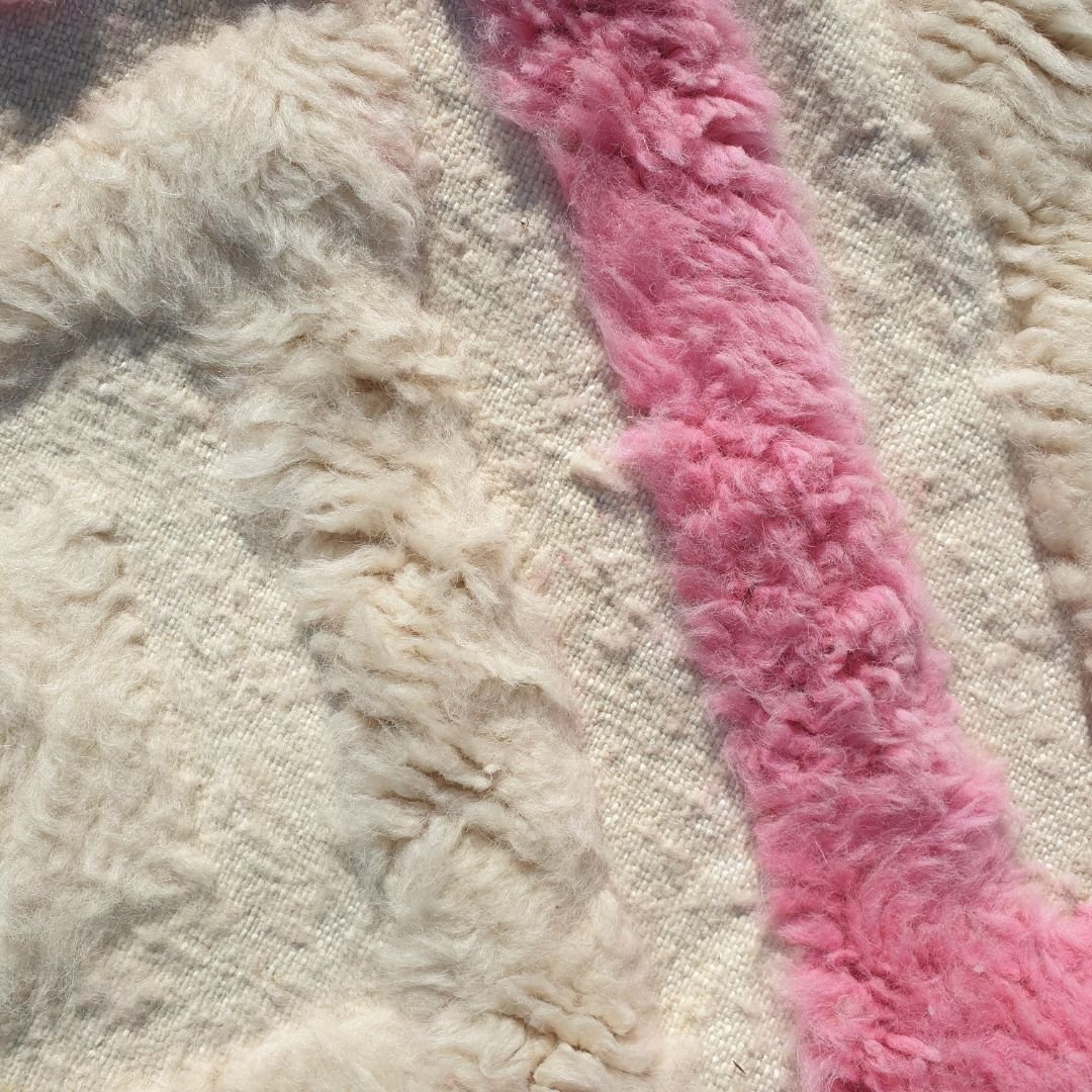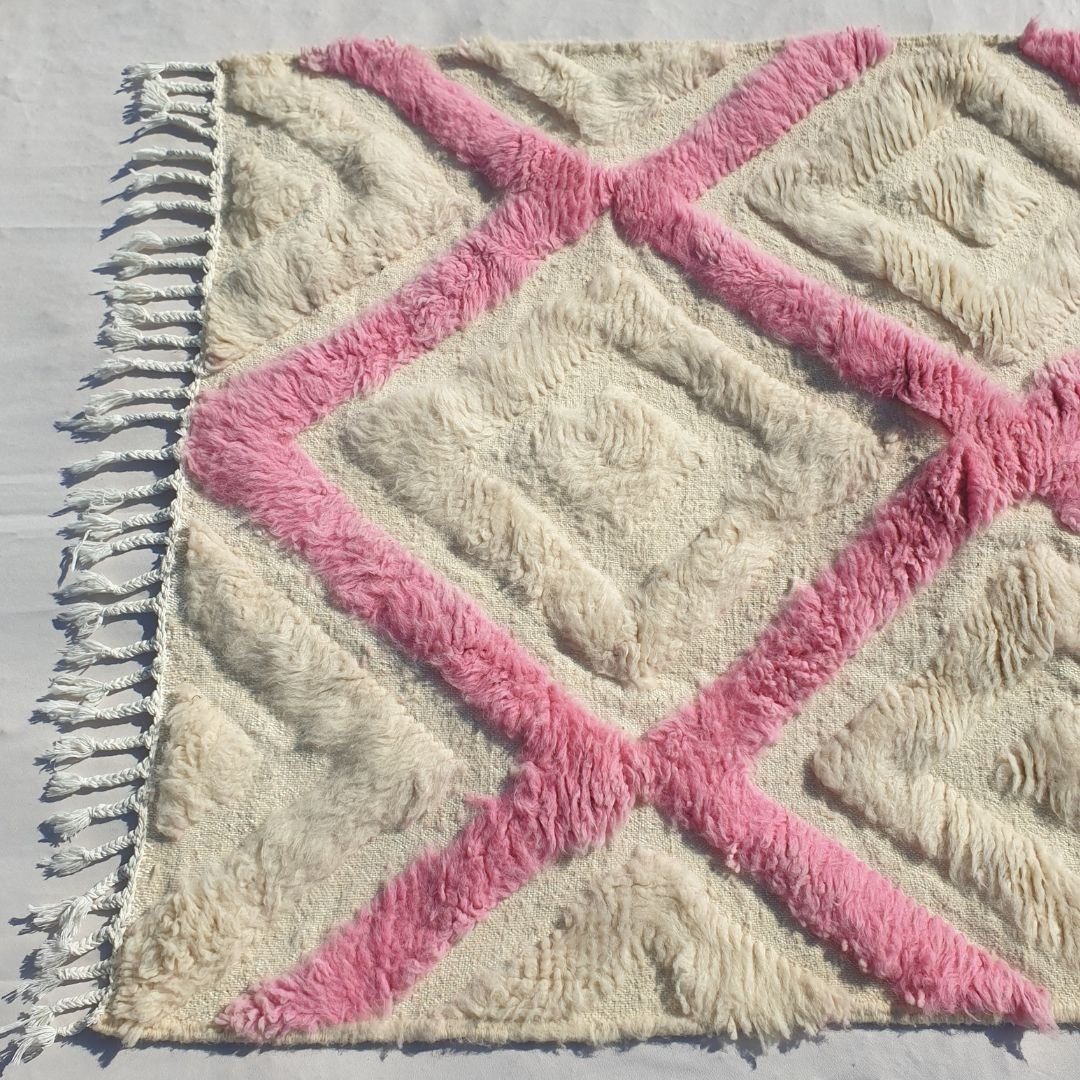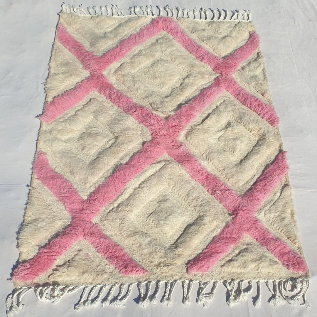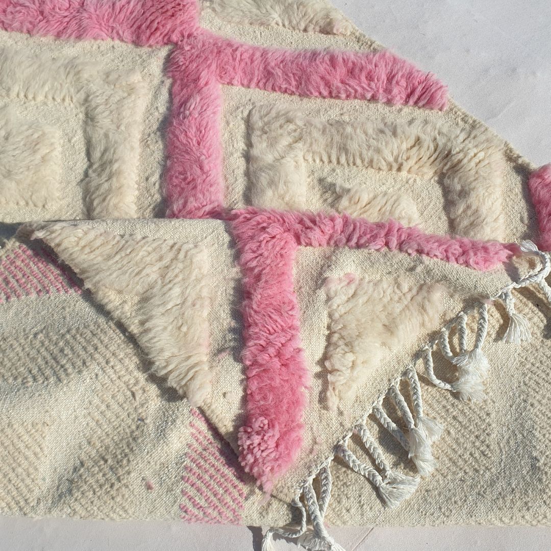 Tiwli | White & Pink Moroccan Rug 3x5 Beni Ourain Ultra Soft | 3'77x5'44 Ft | 115x166 cm