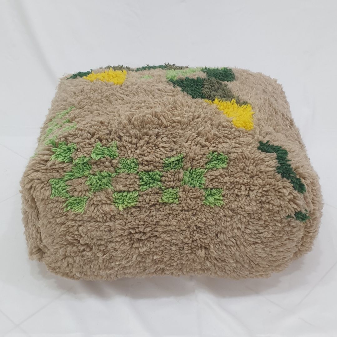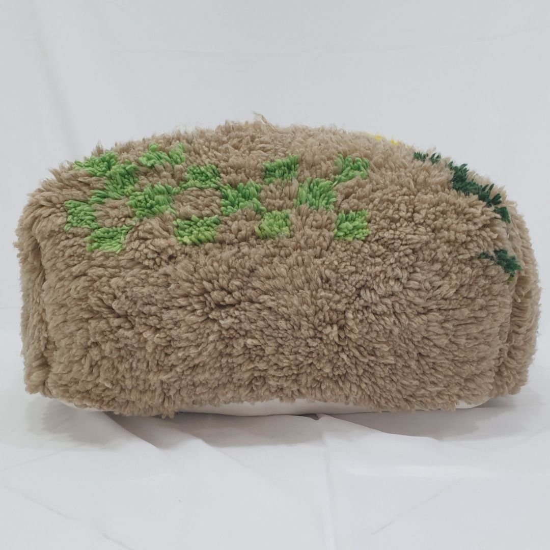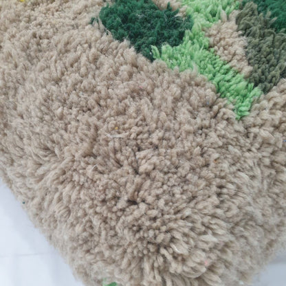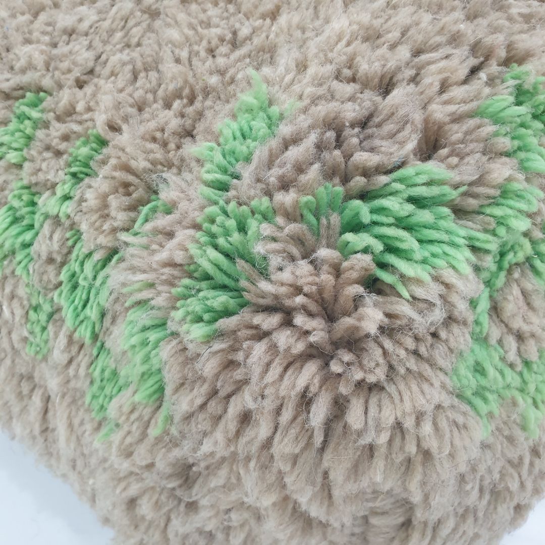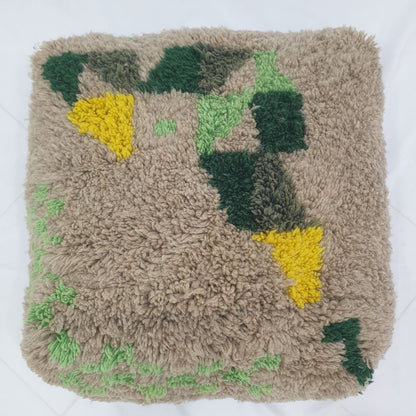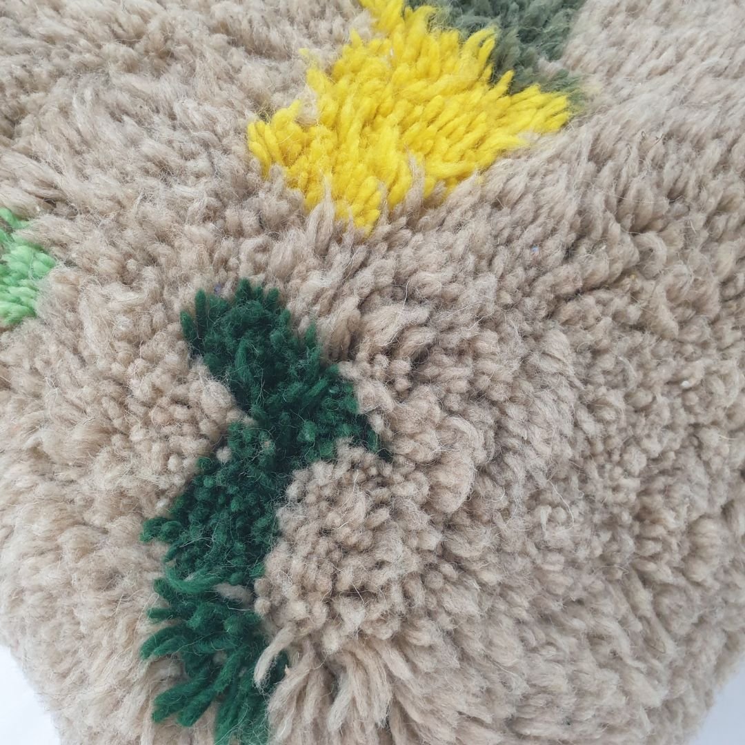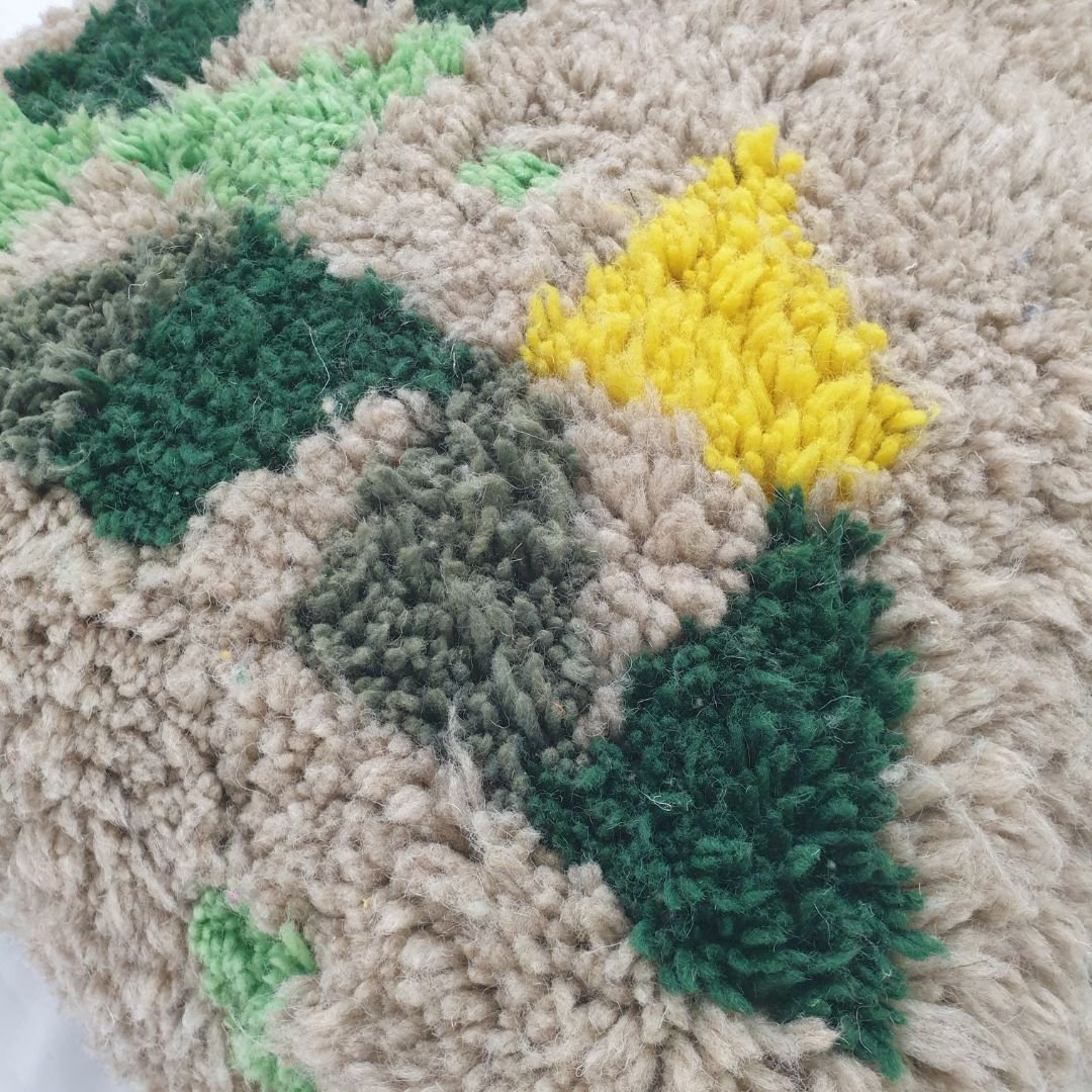 Whimsical Handwoven Beni Ourain Pouf – Green Yellow Floor Cushion 24x24x8 inch | 60x60x20 cm