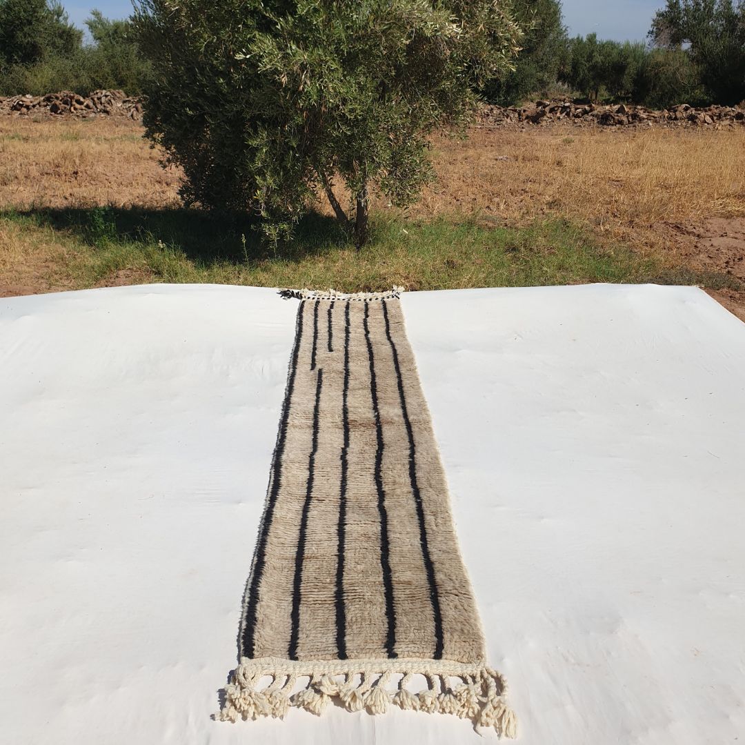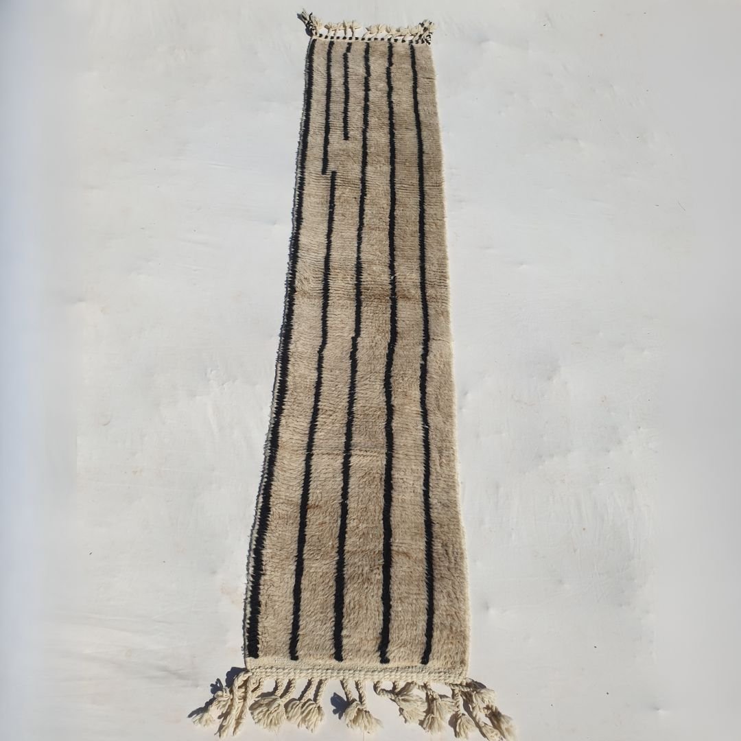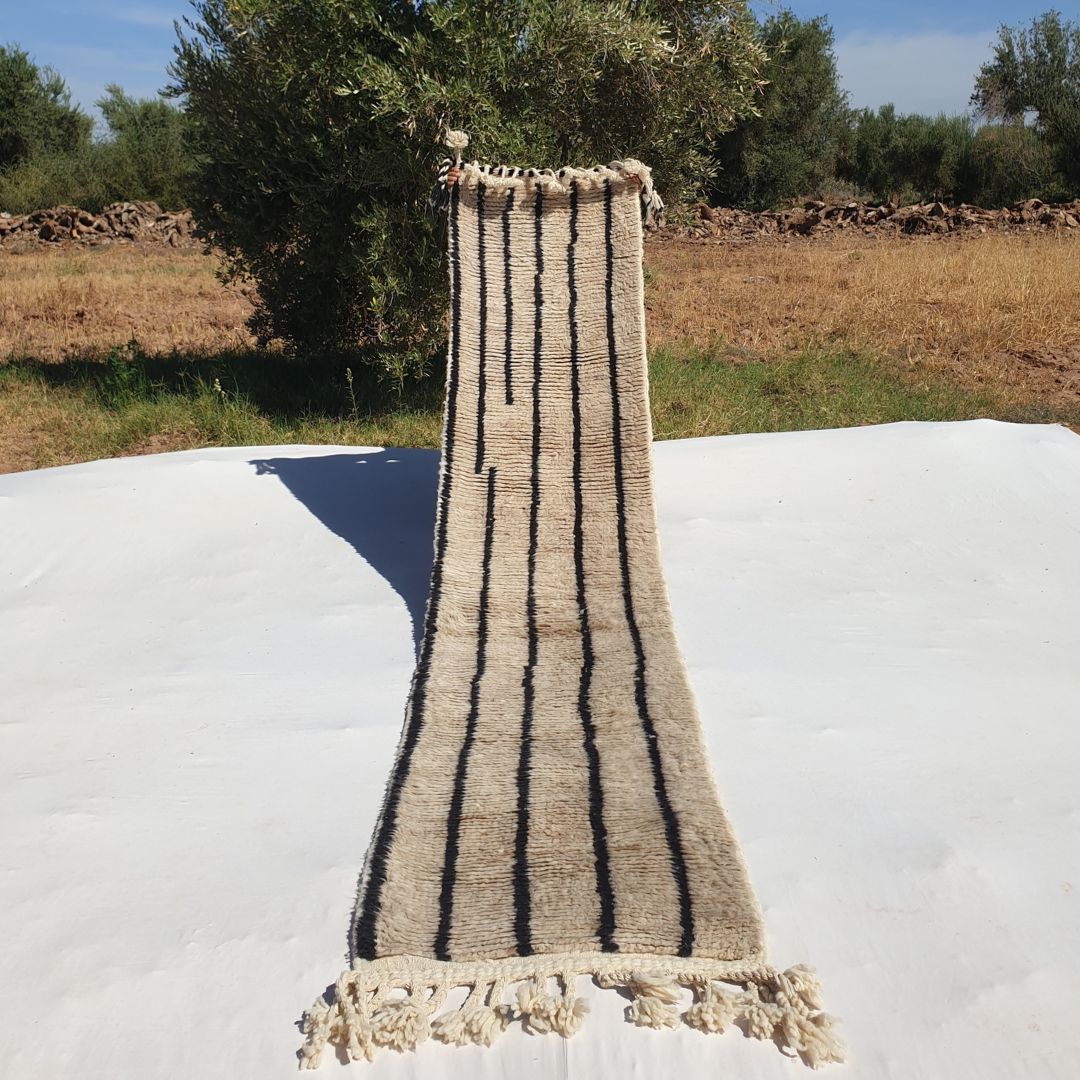 Zinala - Beige Moroccan Runner Rug Beni Ourain | Authentic Berber Hallway runner | 2'23x10'93 ft | 68x333 cm