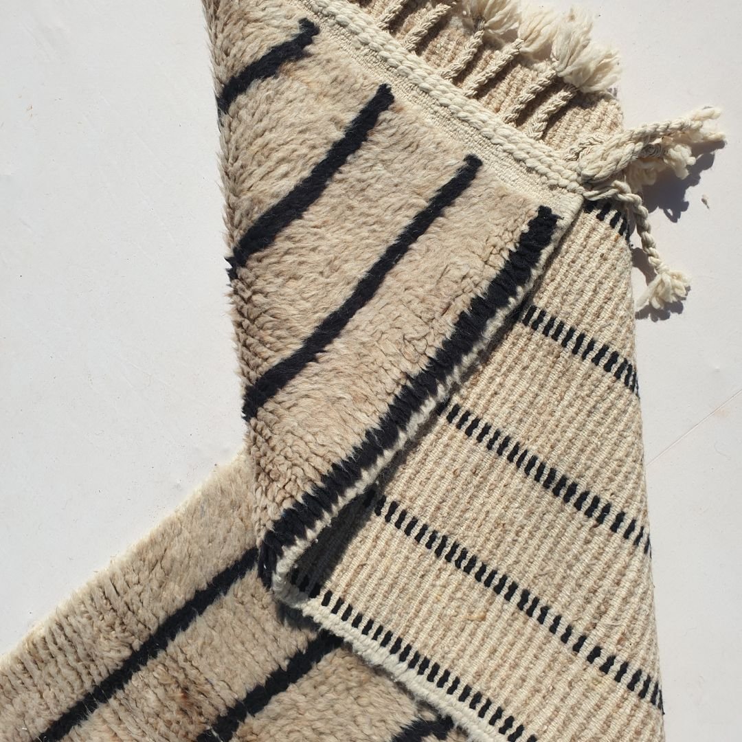 - How do I maintain my Beni Ouarain rug? Regular vacuuming and occasional professional cleaning are recommended. For more detailed care instructions, visit our cleaning instruction page here : Cleaning Moroccan Rugs.