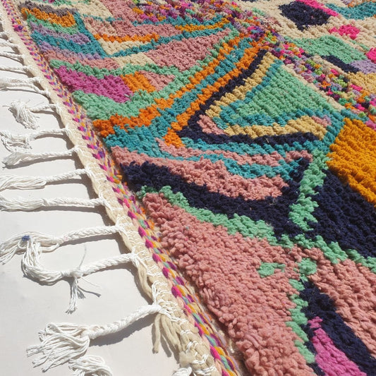 Bakhra | Marockansk matta 9x12 Large Boujad | Färgglad autentisk handgjord berbermatta | 9'81 x 12'76 Ft | 300x390 cm