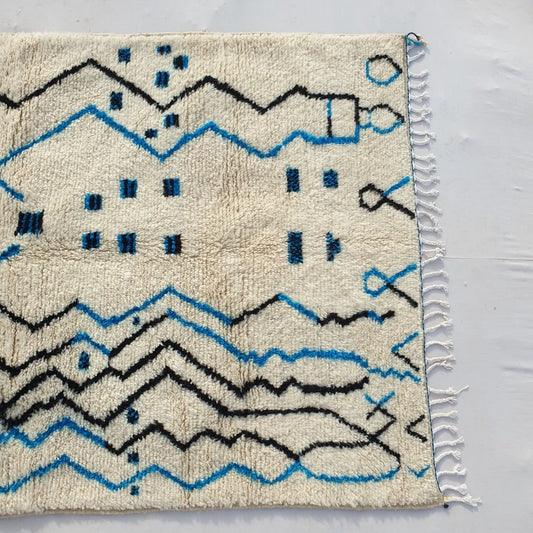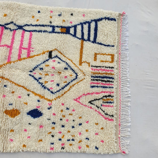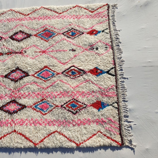Tembka- Vit marockansk matta 3x4 Azilal | Autentisk handgjord berbermatta för vardagsrum | 97x137 cm | 3'20x4'50 fot
