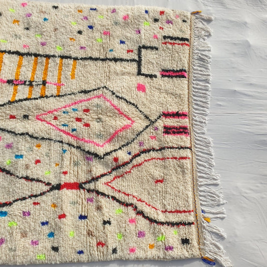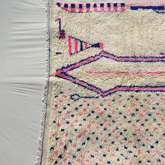 Azilal Moroccan Rugs, known for their exquisite beauty and unique designs, are handcrafted by skilled women in the Atlas Mountains of Morocco. Each rug tells a story, woven with a mix of wool and cotton and infused with love, resulting in a soft and warm texture that complements any style. These rugs are a labor of love, symbolizing the resilience and creativity of women striving to improve their lives and those of their families. Created in the heart of the Azilal tribe, nestled in the Moroccan Berber region, these rugs draw inspiration from the breathtaking landscapes of flowered mountains and flowing rivers. Azilal rugs, the epitome of beauty and color, are perfect for self-use or as heartfelt gifts during the long winter nights. Reflecting the richness of the region, these traditional carpets are often double-sided, offering a fluffy and warm side for winter and a lighter side for summer. Visit our large collection of available Moroccan Rugs.