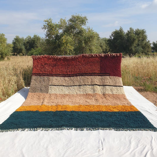Ultra Fluffy marockansk Beni matta | 10'5x6'7 Ft | 3,2x2 m | RAWJA | Marockansk färgglad Beni Mrirt matta | 100% ull handgjorda