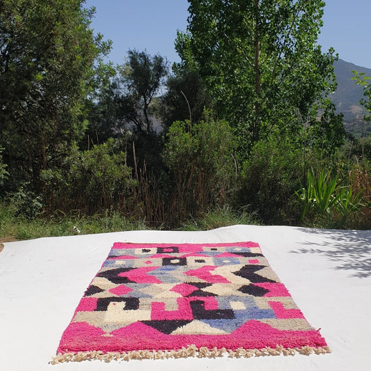Kachaa - Marockansk Boujad Berbermatta | Färgglad äkta handgjord sovrumsmatta | 8'7x4'8 Ft | 2,65x1,45 m
