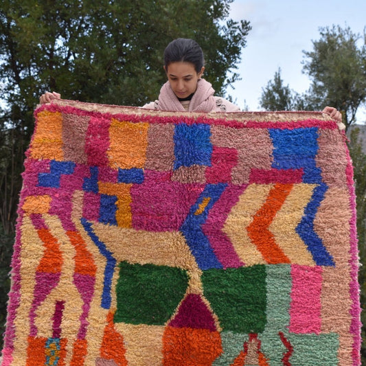 BELBULA | 10x6 fot | 3x2 m | Marockansk färgglad matta | 100% ull handgjorda