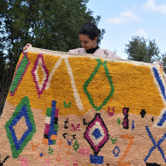BAZINA | 10x6'5 Ft | 3x2 m | Marockansk färgglad matta | 100% ull handgjorda