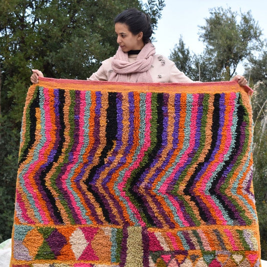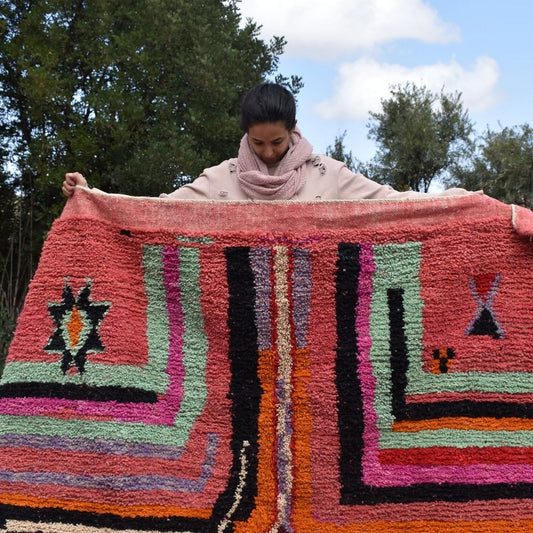 TAFROUD | 8x5 fot | 247x153 cm | Marockansk färgglad matta | 100% ull handgjorda